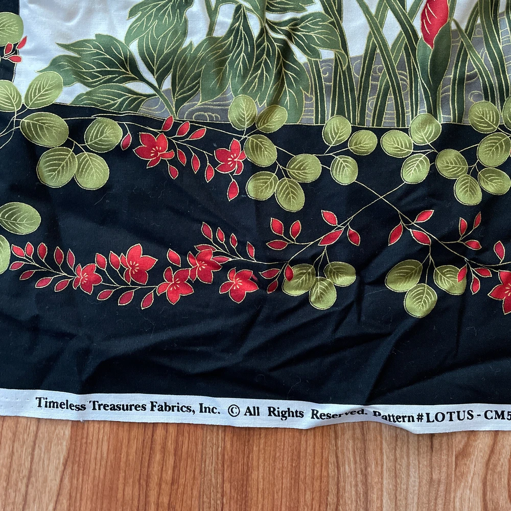 lotus red yellow floral fabric Panel timeless treasures