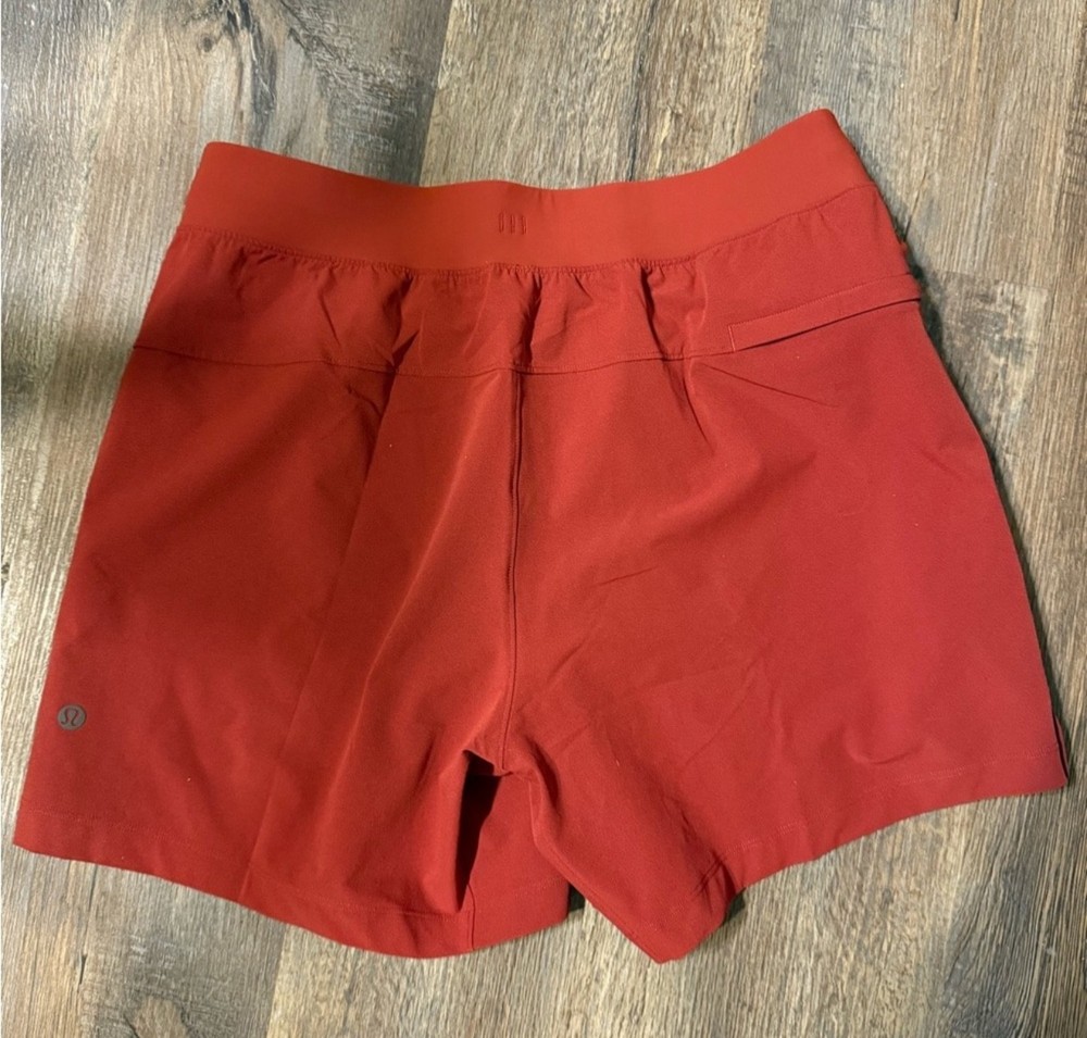 The lululemon athletica men's burnt orange athletic shorts are a stylish and functional addition to any active wardrobe. With a comfortable regular fit and size S, these shorts are perfect for men looking for high-performance activewear. The vibrant orange color adds a pop of color to your workout gear, while the athletic style ensures freedom of movement during any activity. Made by the popular brand Lululemon, these shorts combine quality craftsmanship with a trendy design, making them a versatile choice for any occasion.
