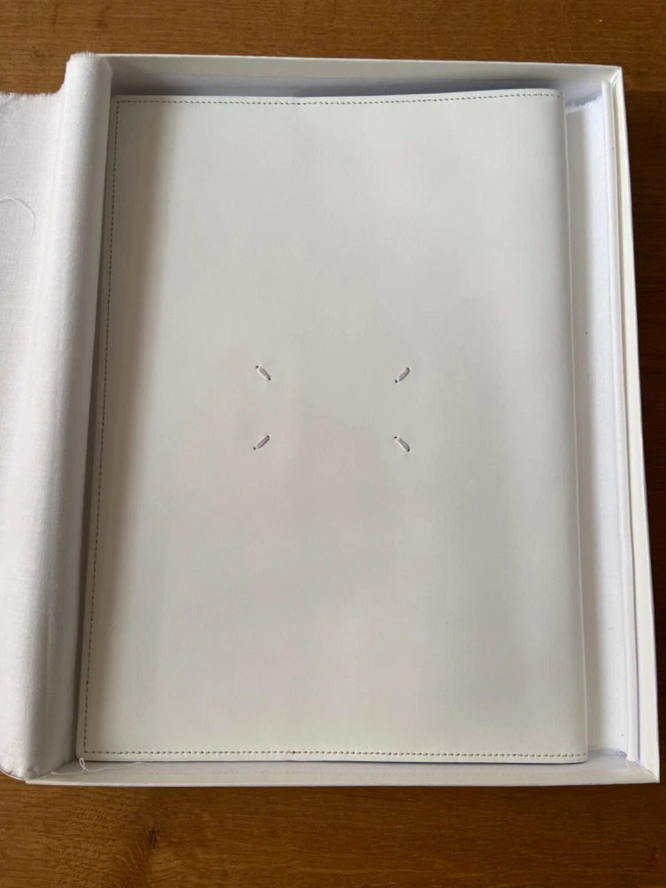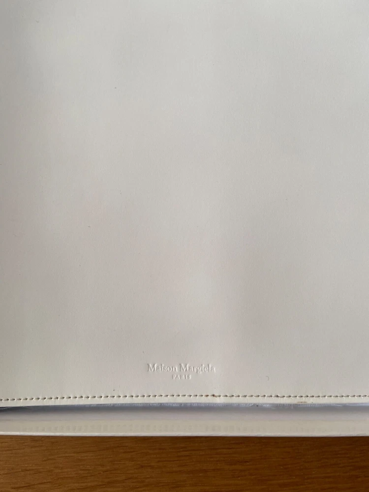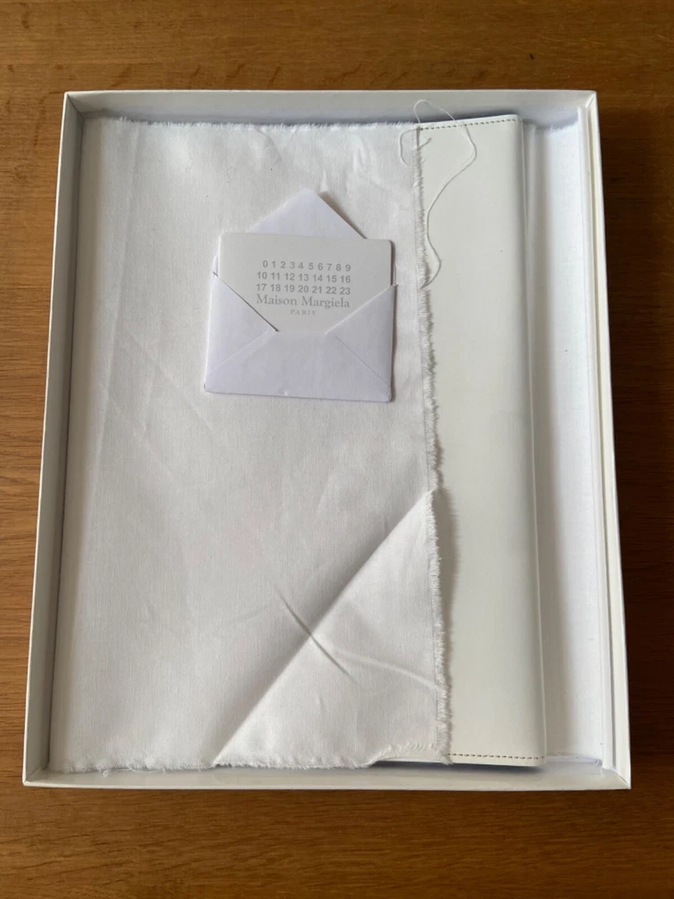 New never used Maison Margiela white leather document holder with original box and cloth. Large size around 12”x 8.5”.