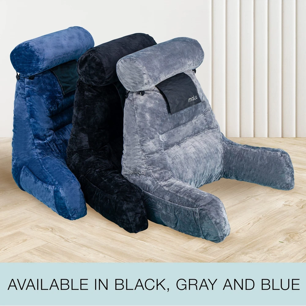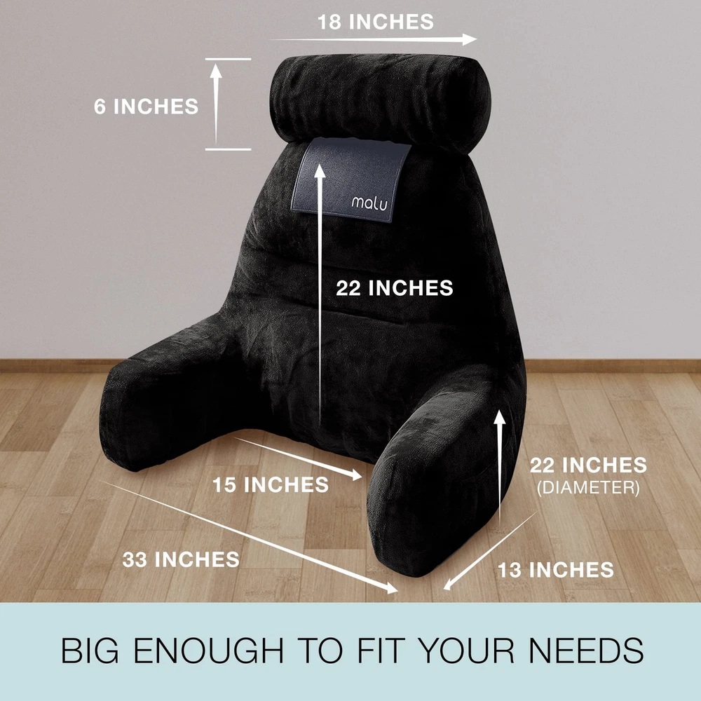 malu Extra Large Reading Pillow- Ergonomic Pillow- Back Pillow for Bed+ Rolling Mat for Neck Support- with Shredded Memory Foam- for Sitting Up in Bed, Couch or Floor Designed for Comfort and Relaxation- Ever feel a kink in your neck after reading for a couple of hours? No worries! With this back pillow for bed, all you need to do is sit back, relax and read your favorite book—cramp-free! That's because this backrest pillow is big, firm and uniquely shaped to provide support to your lower back and neck. Also includes a rolling mat that can be used as an extra pillow, a vegan leather headrest and a handle! Low Maintenance Wonder Pillow- Malu's super comfy reading pillow is very easy to clean! You can simply spot clean your pillow by hand using mild detergent and blot the excess moisture with a clean towel. To clean the PU leather headrest, use a damp rag or sponge for best results. Made with super soft and durable material, your neck and back are in great hands. Malu's sit-up reading pillow is NOT washing machine safe. The Pillow for Any Activity- Need bed pillows for sitting up in bed? Malu's Reading Pillow is the perfect one for you! Our top-quality reading and bed rest pillows are crafted with your comfort in mind. You can take this sitting pillow anywhere and use it however you please. Our firm foam ensures that you’ll be able to enjoy this reading pillow longer than the competition! Perfect for reading, watching television, or just curling up in bed, it's the pillow for every occasion! Great for Adults and Kids- Looking for a present for a loved one? Malu's easy-clean backrest pillow might just be what they need! Great for bookworms and movie watchers alike, this ergonomic sit-up pillow will keep your neck and back well supported. This reading pillow is an absolute must-have! Available in three different colors (black, grey, and blue), pick the right color to match the person you have in mind - young or not! Superior customer care: With Malu, you’ll receive attentive customer service and support. We focus on providing a high-quality product experience and are committed to ensuring you have a great experience with your purchase. Shipping We offer FREE shipping on all orders! We use a selection of shipping services such as UPS, FedEx, USPS etc. We only ship to the lower 48 states, no APO/FPO addresses or PO Boxes allowed. Local pickups and combined shipping options are not provided at this time. Return You can return a product for up to 30 days from the date you purchased it. Any product you return must be in the same condition you received it and in the original packaging. Please keep the receipt. Payment We accept payment by any of the following methods: PayPal Please pay as soon as possible after winning an auction, as that will allow us to post your item to you sooner! Feedback Customer satisfaction is very important to us. If you have any problem with your order, please contact us and we will do our best to make you satisfied. Contact Us If you have any queries, please contact us via ebay. We usually respond within 24 hours on weekdays. Please visit our eBay store to check out other items for sale! Thank you for shopping at our store.