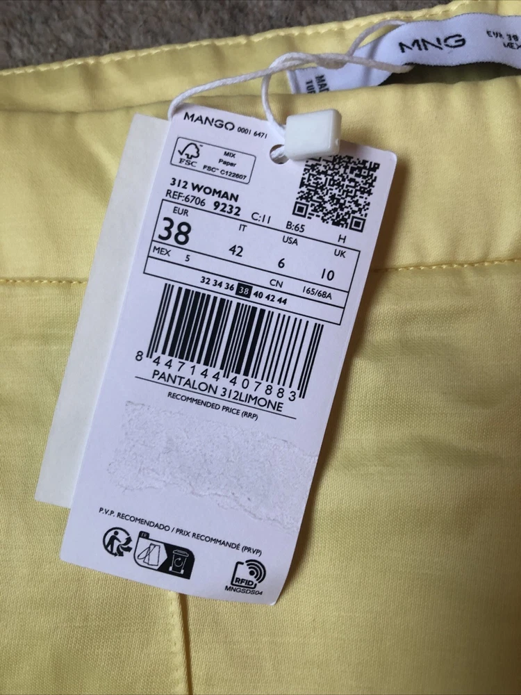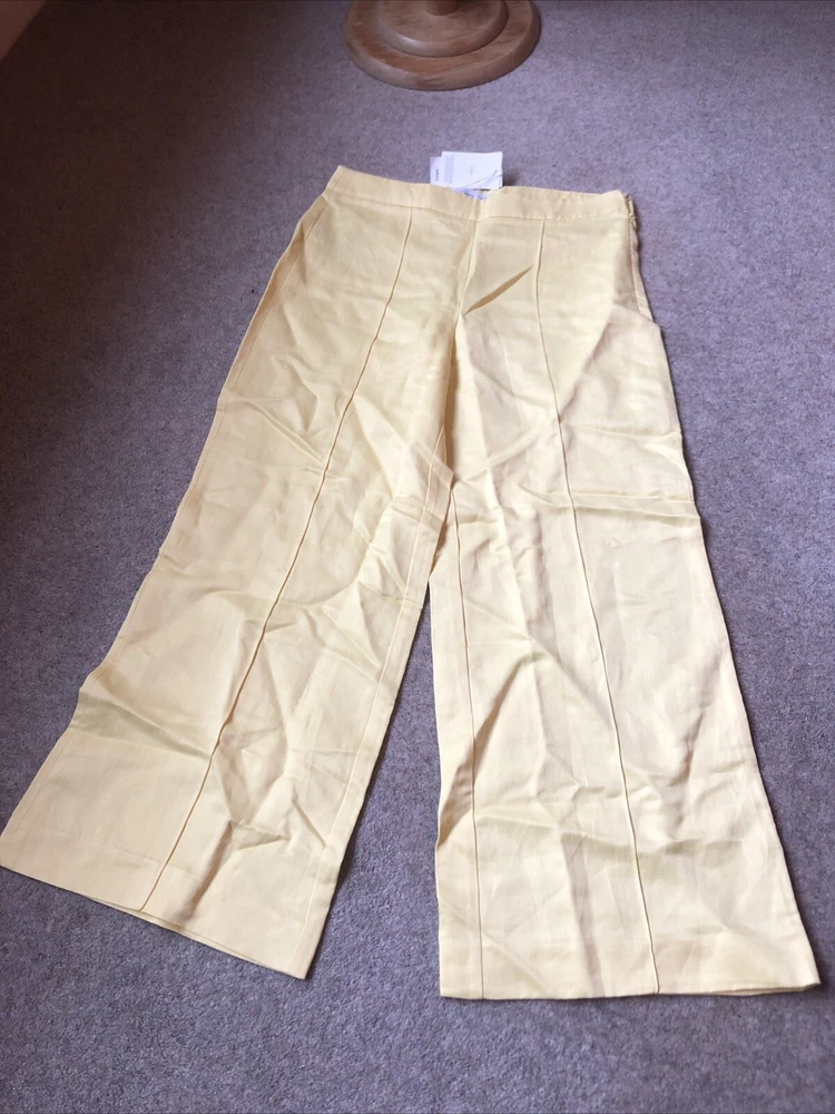 mango linen Pantaloon trousers Cropped Straight Leg Size UK10 In Yellow. Condition is New with tags. Dispatched with Royal Mail 2nd Class.