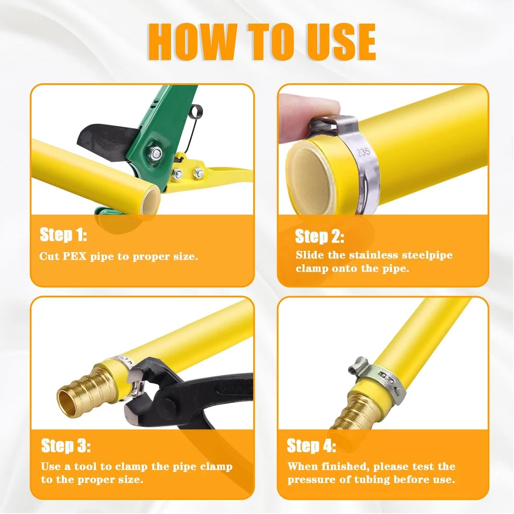 mankk PEX Pipe Clamp Cinch Tool Ear Kit, Pex Kit Product Details Brand: mankk Material: Stainless Steel Color: Pex Clamp Tool Kit Handle Material: Stainless,Stainless Steel,Steel Item Weight: 0.06 Kilograms Specific Uses For Product: Crimping,Cutter,Electrical,Plumbing Grip Type: Ergonomic Cutting Width: 32 Millimeters Manufacturer: mankk Part Number: M-118 Item Weight: 2.08 ounces Package Dimensions: 9.92 x 3.98 x 1.97 inches Country of Origin: China Size: PEX Clamp Tool Kit Item Package Quantity: 1 Batteries Included?: No Batteries Required?: No Brand: mankk Material: Stainless Steel Color: Pex Clamp Tool Kit Handle Material: Stainless,Stainless Steel,Steel Item Weight: 0.06 Kilograms Specific Uses For Product: Crimping,Cutter,Electrical,Plumbing Grip Type: Ergonomic Cutting Width: 32 Millimeters PEX Pipe Cinch Tool Set ,Includes: Ear clamp pliers crimp tool, pipe cutter, 20pcs 1/2" and 10 pcs 3/4" 304 Stainless Steel Clamps. The matching pincer crimping tool can not only be used to clamp the ear hose clamp, but also be used as a nail puller or to cut steel wire and iron wire.PEX pipe cutter can quickly and easily cut pipes with a diameter less than 32 mm into required dimensions,meet your various needs. Single ear hose clamp is made of 304 stainless steel, which is corrosion-resistant and rust-proof, and can be used in complex environments.Ear clamp is made of high-strength chrome vanadium steel, which is strong and can be used for a long time. It has a non-slip handle for your convenience. Widely applications in all plumbing system - Hydronic heating system, air condition system, water heater, Telecommunications electrical plumbing, food pipeline system etc. Providing a strong and reliable crimp fitting application. Easy Installation:Slide PEX cinch clamp ring over the pipe, push the pipe onto the fitting and squeeze with your clamp tool. Providing a strong, leak-free and reliable crimp fitting connection.