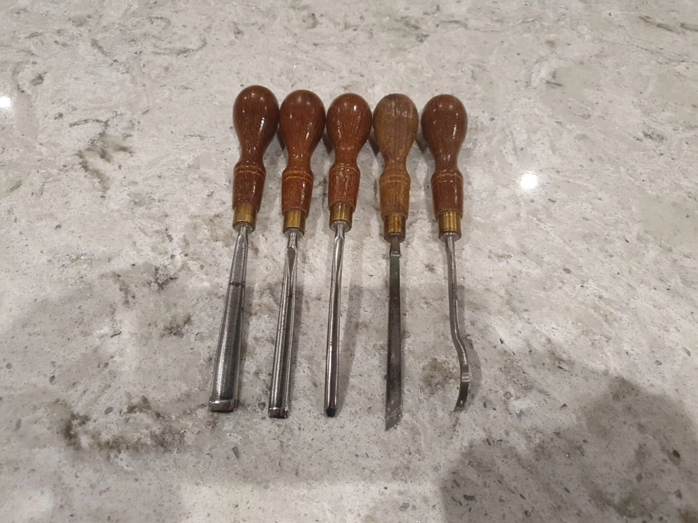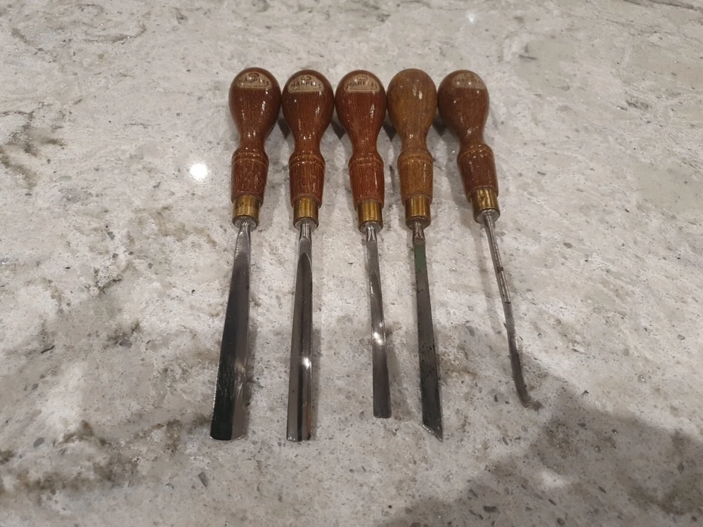 Iconic Marples carving chisel set all in fantastic condition all are sharp and ready to use! Good luck and happy bidding.