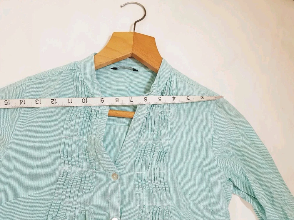 Add a pop of colour to your wardrobe with this M&Co Sandstone green paisley pattern shirt. The long sleeve shirt features a collared neckline with button closure and is made from 100% cotton jersey fabric. It's perfect for any occasion from casual outings to formal events such as weddings or parties. The lightweight shirt is machine washable and has accents of buttons. It comes in a regular fit and size 10, making it a great addition to any women's clothing collection. This limited edition shirt is not only comfortable but also stylish, with its colourful theme and solid pattern design. Made in the United Kingdom, it's perfect for the winter, autumn, and spring seasons. In Good Used Condition Measurements In inch : Please see photos above for all measurements I will ship this item out via Evri 2-3 Day Mail with a tracking number for confirmation I ship items out EVERY DAY so EXPECT a QUICK delivery! Please feel free to ask any questions you may have I answer most questions instantly! PLEASE NOTE THAT ALL OUR ITEMS ARE %100 AUTHENTIC Please Note that all our items are from smoke and pet free Environment. #06/04/23# (B94) PLEASE VISIT MY STORE AND CHECK MY OTHER ITEMS THANK YOU