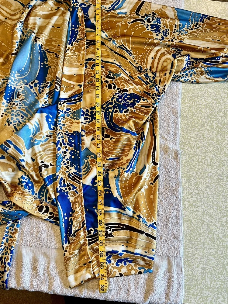 Elevate your loungewear game with this vintage men's Japanese kimono robe. Made of 100% nylon, this robe features a graphic print pattern with a mix of bold and muted colors that make it perfect for any bachelor pad or playboy-inspired wardrobe. The 3/4 sleeves and belted closure add a touch of comfort and style, while the machine washable garment care makes it easy to maintain. Ideal for relaxing at home or as a statement piece for a night out, this robe is perfect for any man who wants to add a touch of Japanese aesthetic to their wardrobe. The robe's theme is inspired by Japanese culture, making it a unique and trendy choice for any fashion-forward man. So why wait? Take your loungewear to the next level with this vintage men's Japanese kimono robe. The item will be very carefully packaged and shipped promptly upon receipt of payment. All items I sell are guaranteed to be as described and pictured, or your payment will be refunded upon return of the item in its original condition.