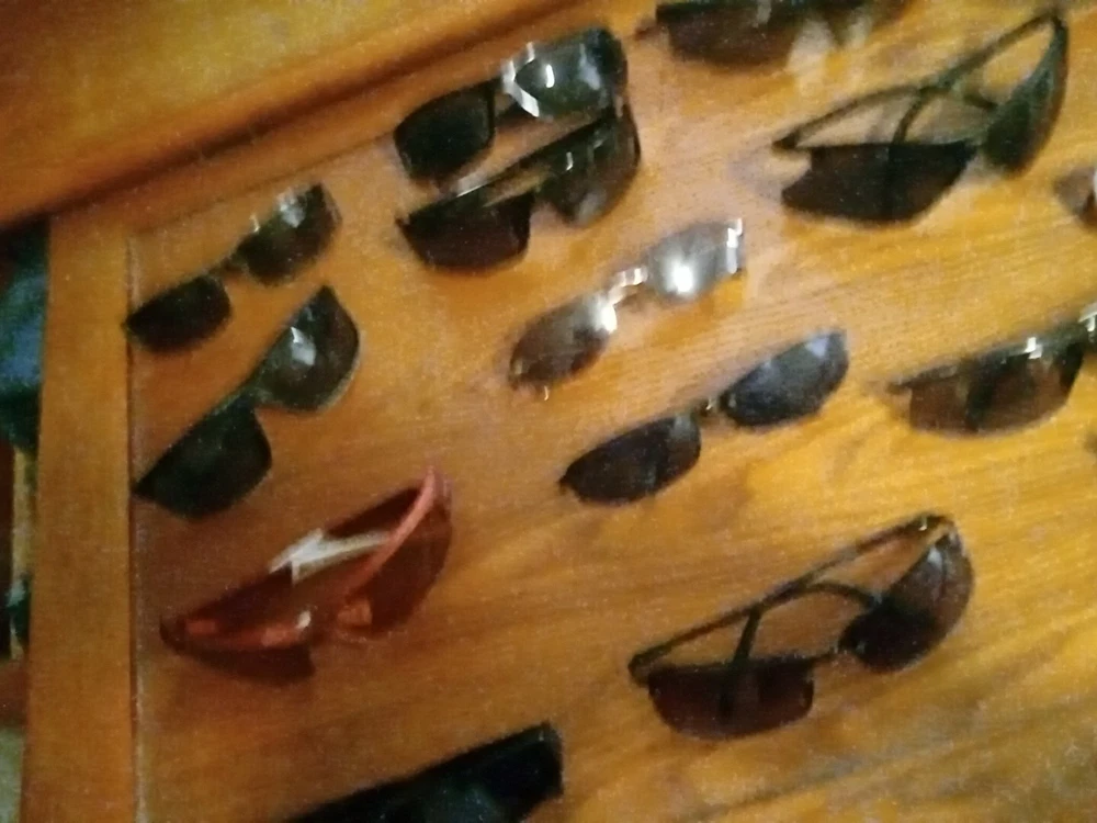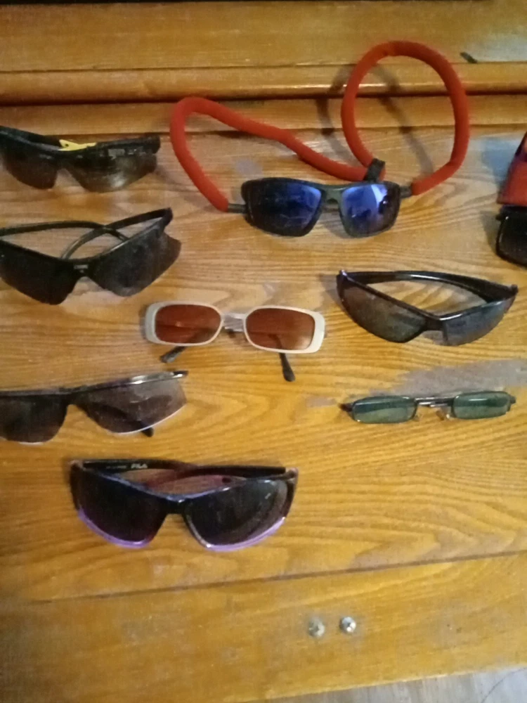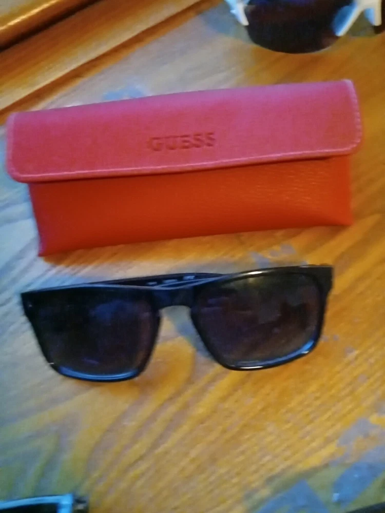 21 prs of men's sunglasses different brands guess with case ect Look at pictures scratches on some of the lenses