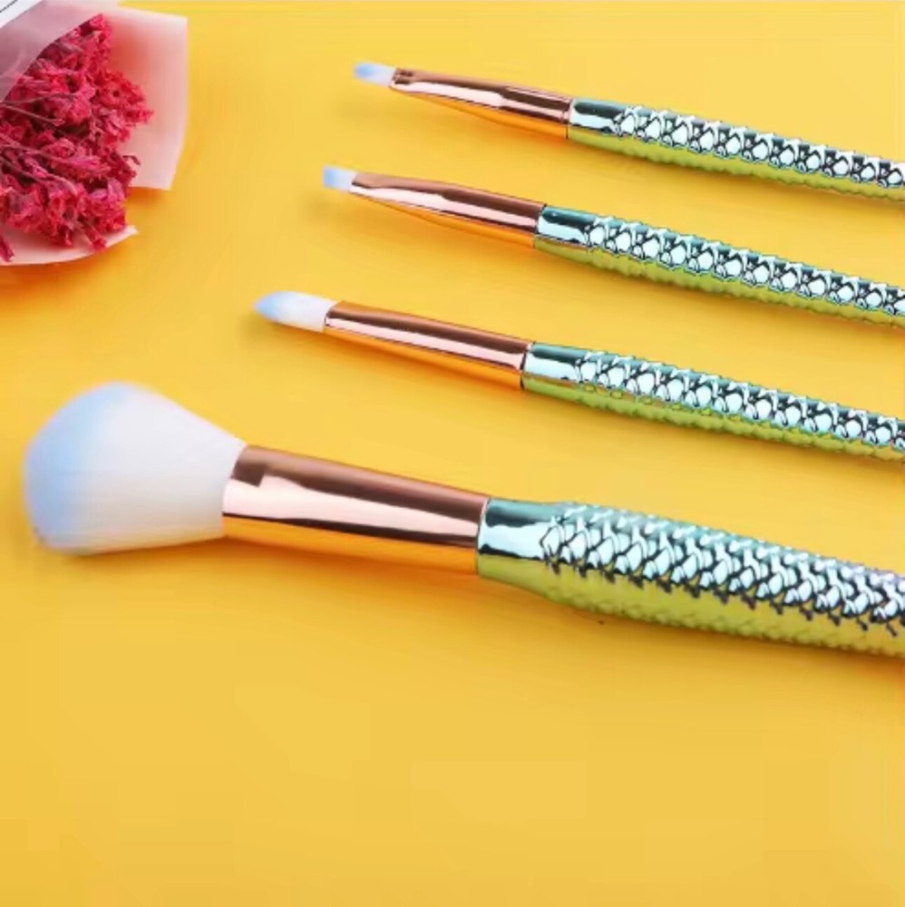 mermaid makeup brushes 4pcs set including eyeshadow & blush brushes.