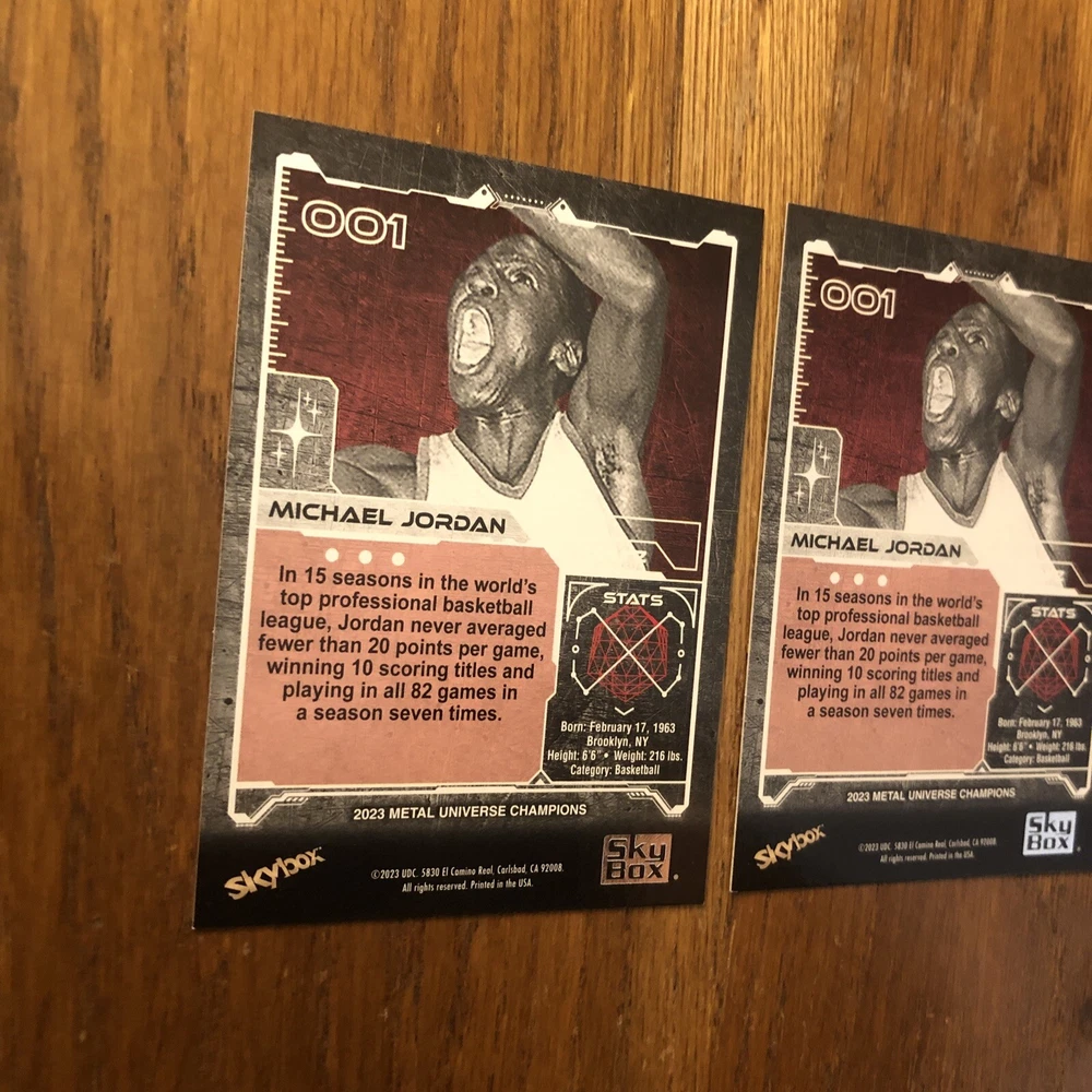 Winner gets all 3 Jordan cards from 2023 Metal Universe Champions set pictured. All cards are in excellent condition with most suitable for grading (See pics). Always a good time to invest in the all time greats like Jordan. Lot includes: 2x Base #1 1x Aqua Parallel #1 I will combine shipping for multiple items so please check out my other listings!