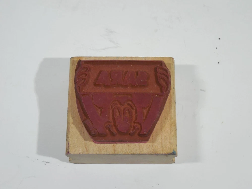 This Mickey's Paper Company rubber name stamp features the name "SARA" in a charming Disney font. The stamp is made of high-quality rubber and is perfect for adding a touch of personalization to your crafting projects. Whether you're creating greeting cards, scrapbook pages, or other paper crafts, this stamp is sure to come in handy.The stamp is designed for use with wood blocks and is not handmade. It is made of durable material and is easy to clean. The theme of the stamp is perfect for Disney fans and those who love to add a touch of whimsy to their crafts. Get your hands on this Mickey's Paper Company rubber name stamp today and take your crafting to the next level!