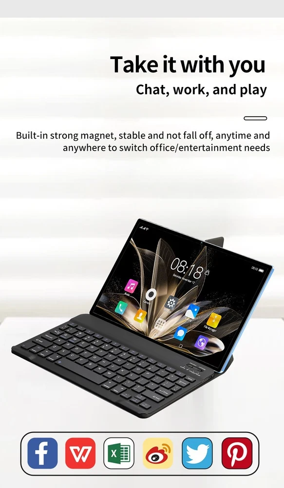 Tablet 11 inch Ultra Big Android 12 Tablets, 256GB Storage,8GB RAM, 8800 mAh Battery , 8-Core 2.5GHz ,2 Speakers, 4G/5G WiFi with Case Bullet Point ★ 11inch LARGE DISPLAY& 10 CORE CPU: Experience ultimate performance with the Weiboer Android Tablet featuring a robust 8-core CPU, 8GB RAM, and 256GB internal storage. Expand up to 1TB with microSD (sold separately). Enjoy seamless multitasking on the fast and responsive tablet. Its 10.1 inch 1920x1200 full screen with a wide viewing angle offers high-resolution images, providing a more realistic and powerful visual experience. ★ UPGRADED ANDROID 12 TABLET: 10.1 inch google android tablet is equipped with a new upgraded system "Android 12", providing a more personalized, safe and easy-to-operate system experience. You can install apps like Netflix, TikTok, YouTube, LINE, Yahoo, Twitter from the Google Play Store on your GMS certified tablet. ★ 8800MAH LONG LASTING BATTERY: The 10.1 inch Computer Tablets is equipped with battery up to 10500mAh. Achieve up to 8 hours of video battery life, and use the Type-C port to charge more easily, regardless of positive or negative. With a weight of 996g, it is very convenient to carry it with you whether you are working, studying or going out. ★ MULTIFUNCTIONAL 10.1 INCH TABLET: Equipped with a 8MP + 16MP camera and By combining it with the flash, it is thought that shooting in dark places will be really improved. iMeshbean tablets android Bluetooth 5.0 supports high-fidelity headphones for sound quality enjoyment. Great for work or pleasure, use this tablet for video conferencing, gaming, streaming, or even as an e-reader in your preferred language. ★ 2 IN 1 TABLE WITH KEYBOARD LEATHER CASE: Tablet connect with Keyboard, change 2 in 1 laptop; Tablet case, Screen protector and Touch pen can better use. ★ SEAMLESS CONNECTIVITY: Get fast and stable internet connectivity with 2.4G/4G/5G WiFi that offers better range and speed, undisturbed streaming, gaming or browsing. The sturdy metal frame adds durability to this WiFi Android tablet, making it perfect for everyday use . ★ IDEAL CHOICE FOR GIFT: With exceptional performance, a chic aesthetic, and exquisite packaging, this tablet stands as the ideal gift for occasions like Christmas, Valentine's Day, birthdays etc, Its impressive features ensure a memorable and versatile present for your loved ones. Specification 11 inch Tablet Brand JWEIBK Model P70 Shell Metal aluminum alloy shell Color Black Blue Display 10.1 inch Resolution 1920X1200 Keyboard Backlight Bluetooth Keyboard(Support external keyboard) CPU MTK Core 8 core Storage 8GB RAM +256GB ROM Camera Front Camera:1600W Rear Camra:2400W Battery 8800mAh Operating system Android 12 Bluetooth BT5.0 Processor Speed 2.5 GHz Microphone 42db 2.2kΩ Speaker Built-in 8Ω 1W TF Card Micro SD Earphone 3.5MM Interface Type Cx1, headphone jack 3.5 mm x1, microSD slot x1 DC power x1 Power adapter 5V 3A Package included 1x11inch Tablet 1xbluetooth keyboard 1xCharger 1xKeyboard Case 1xWireless Mouse 1xTouch pen 1xEarphone 1xEnglish Manual Package List 1x11 inch Tablet 1x11inch bluetooth keyboard 1xCharger 1xKeyboard Case 1xTouch pen 1xEarphone 1xEnglish Manual