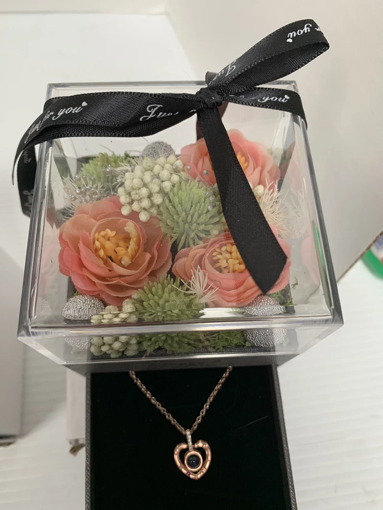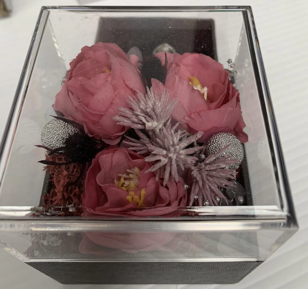 This beautiful jewelry box is the perfect gift for Mother's Day! It features a square shape with a pink color and dried flowers on the top layer for a touch of elegance. The velvet lining material provides a soft and protective cushion for your precious jewelry pieces. Measuring 4 inches in length, 3 inches in depth, and with an item width of 3 inches, this handmade jewelry box has a necklace drawer and can hold one piece of jewelry. It comes with a gift box and is suitable for women of all ages. The paper/cardboard and velvet material combination adds durability and a sophisticated touch. This jewelry box is perfect for organizing and storing your jewelry collection.