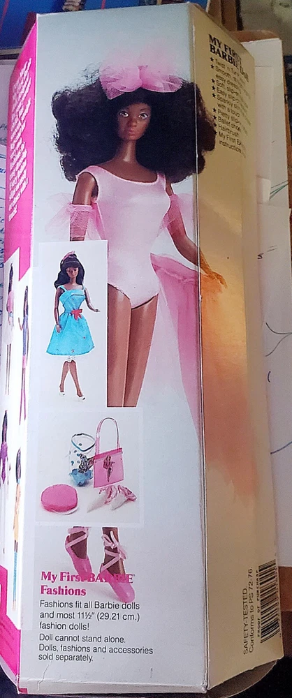 This vintage Barbie doll is a timeless treasure for any collector. With beautiful dark wavy hair and a fashion-forward outfit, this 11-inch doll is the perfect addition to any Barbie collection. From the My First Barbie series, this doll was manufactured in 1986 by Mattel and features a range of aspects such as an African American ethnicity, dark complexion, and brown eyes. Ideal for all occasions, this Barbie doll comes in its original packaging which is unopened, making it a perfect gift for both kids and adults. The doll is an original and licensed reproduction, and its features include being a collector's toy, a vintage piece, and a timelessness treasure. This Barbie doll is a must-have for any fan of the franchise and is a great way to celebrate the beauty and fashion of the 1980s.