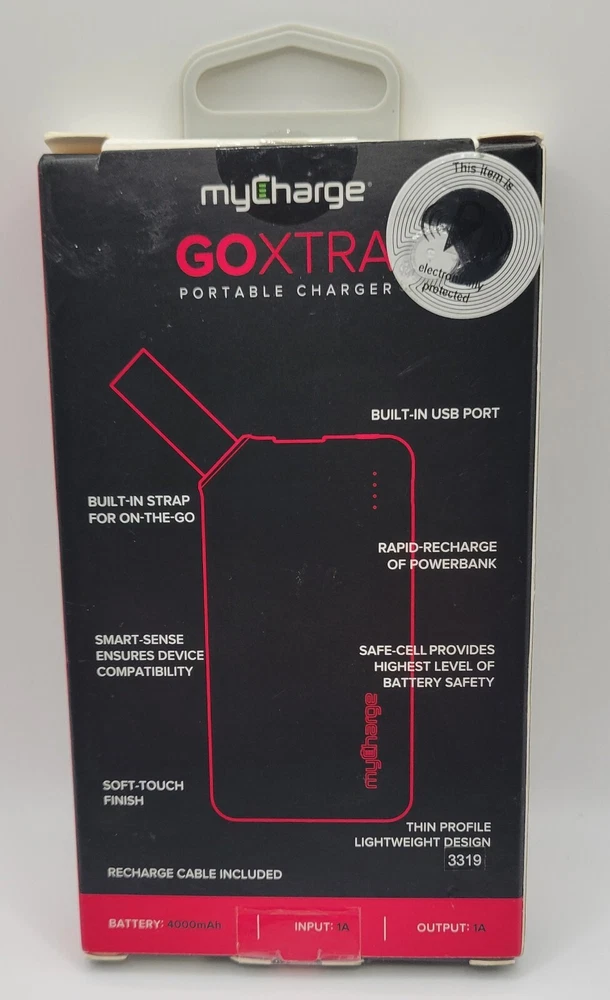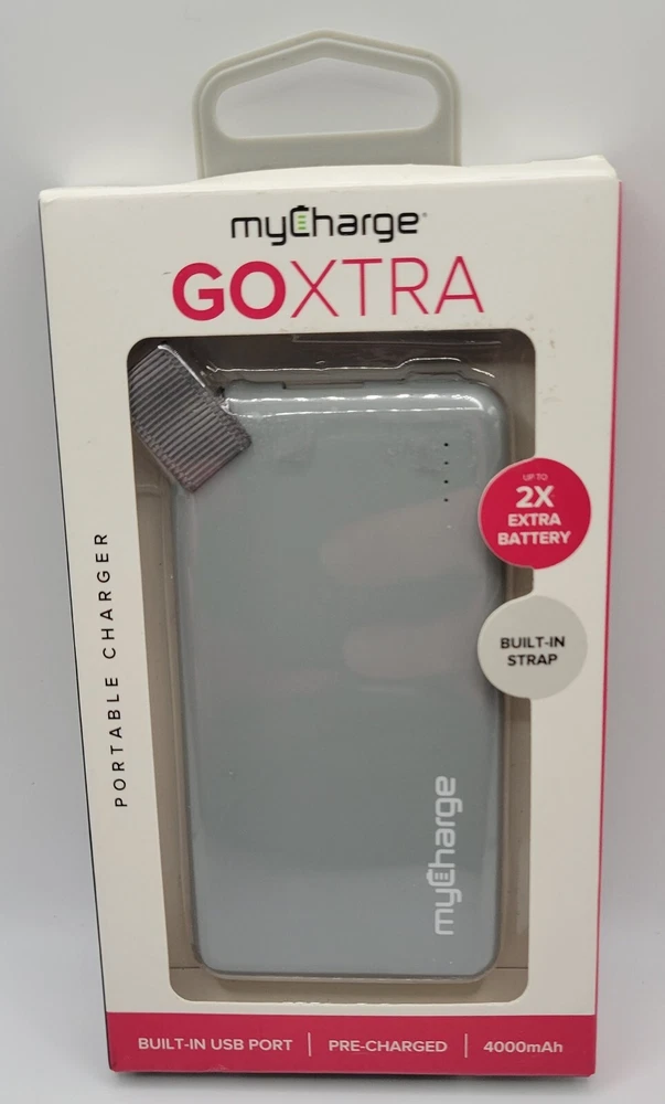 Introducing the myCharge GOXTRA Portable Charger - the perfect solution for keeping your devices charged on-the-go. This sleek and stylish silver charger comes equipped with a built-in USB and a built-in strap for added convenience. With a capacity of 4000mAh, this portable charger is compatible with a variety of devices and has a single port for easy charging. Whether you're at home, in the office, or on the road, the myCharge GOXTRA Portable Charger is a must-have accessory for anyone who needs to stay connected. Shipping is $5.99. We ship all items with the utmost care.