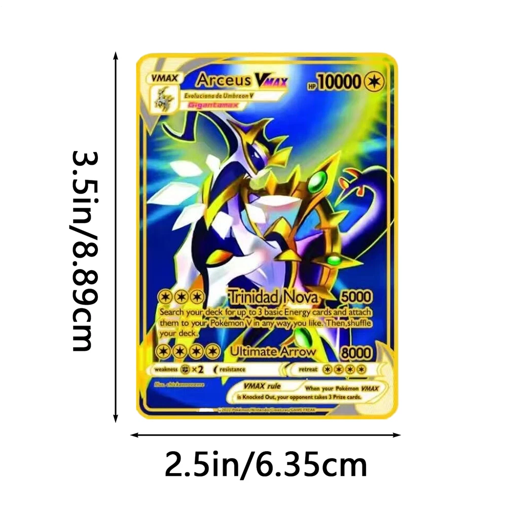 Pokemon Arceus VMAX Metal Card Collection Trading Single Cartoon Cards Game Product Description Attractive Design: Make your assortment truly stand out with the attractive metal game cards. Their unique metal design will add value and increase the exclusivity of your personal collection. Nice Craftsmanship: Experience the perfect game adventure with our metal game cards that are designed with stunning artistic patterns and enhanced with metal effects to transform each card into a masterpiece. Extensively Applicable: Suitable for competitive games, these metal anime game cards not only provide strategic advantages but also build friendships and social connections. Helpful and Useful: Prized by collectors for its beauty and significant meanings, these metal game cards are not only perfect for kids but also suitable for engaging role-play games. Nice Choice: Enhance your game with our unique metal game cards. Perfect for youth, teens, and adults, our anime cards connect you to a passionate community of collectors and enthusiasts. Elevate your game with our metal anime cards. These exquisite designs add a unique touch to any collection. Perfect for competitive or role play games, our cards are designed towards the youth. Specifications: Product Size: about 2.2x3.5 inches/5.59x8.89cm Weight: about 17g Packing List: 1 * Game card Notes: 1. Due to the lighting effects and photographing angles, there is a color difference in the product, please understand. 2. Due to manual measurement, there is a tolerance in the product size. Payment 1.PayPal is a preferred Payment method. 2.You can make a Credit payment via Paypal.Paypal will let you use MasterCard,Visa to pay. 3.Payment should be completed within 3 days after auction closed, or unpaid dispute will be filed for an closing auction.An unpaid case will be filled after 4 days. Delivery details 1. We ship to many countries. 2. Delivery Time: Ship from China via Speedpak to US (takes 8-12 days) Ship from China via others shipping method to other countries (takes 15-60 days) 3. If you want to choose another address, please leave us a message on ebay.Please check your shipping address carefully before checkout,it can't be changed if order completed. Seriously promise:Refund or resend will be offered if item still not arrive in 7-10 business days. Just send us an email,we will give you a satisfied solution as soon as possible. Return policy 1.All item comes with Basic 3 Months Sellers Warranty, if item defective in 3 months,We will offer replacement without extra charger (including shipping fee) After we receive the defective item. If item Defective after 3 Month, Buyers can still send it back, We will contact suppliers or Manufactory for Warranty. Buyers Might Need pay the Shipping fee For resend the replaced item. 2.If item DOA(Dead of Arrival), Buyers can return it in 30 Days, we will replace it with new item after we receive DOA item. Please Contact us Before you sent the item back. 3.All item can be returned for exchange only. The buyer has responsibility for all return shipping including DOA or defective return. About Feedback When you receive the item and satisfied with the product, please leave positive feedback and 5 scores DSR. We will leave a 5 Scores DSR feedback for you. If, for any reason you are not satisfied with your purchase, please contact via Ebay Message and we will do our best to resolve it. Please don't leave neutral or negative feedback without any communition with .