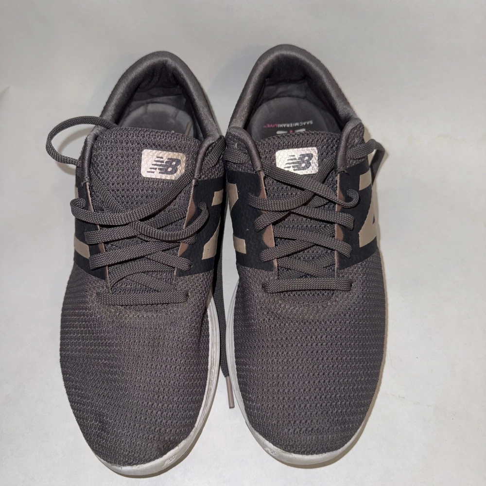 This New Balance Women's Gray Running Shoe is a lightweight sneaker designed for jogging and hiking activities. The shoe features a low top design with a lace-up closure and a synthetic lining material. It has a size 7 UK, 9 US, and 41 EU, with a B width. The outsole is made of rubber for durability and traction, while the insole is foam for comfort. This athletic shoe is suitable for outdoor activities and is a part of the New Balance product line. ****Tag with size is not readable, but they are a size 9 or possibly 9.5 since I wear an 8.5 or 9 and they fit.****