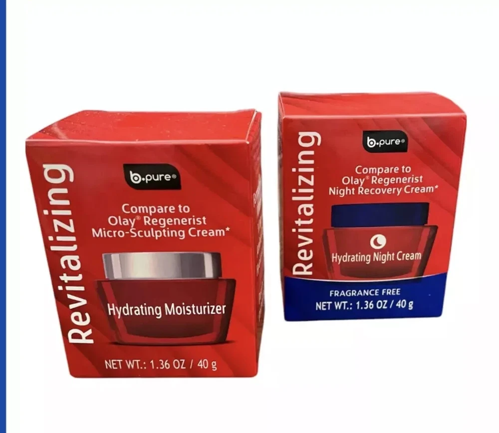 b-pure Revitalizing Hydrating Moisturizer & Hydrating Fragrance Free Night Cream Lot of 2 - 1 each of hydrating moisturizer and 1 each of hydrating fragrance free night cream New in box 1.36 oz each . see picture