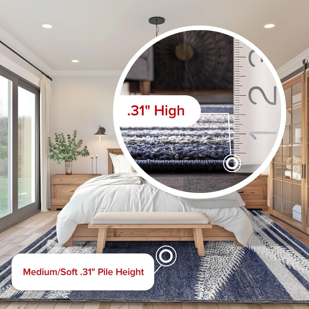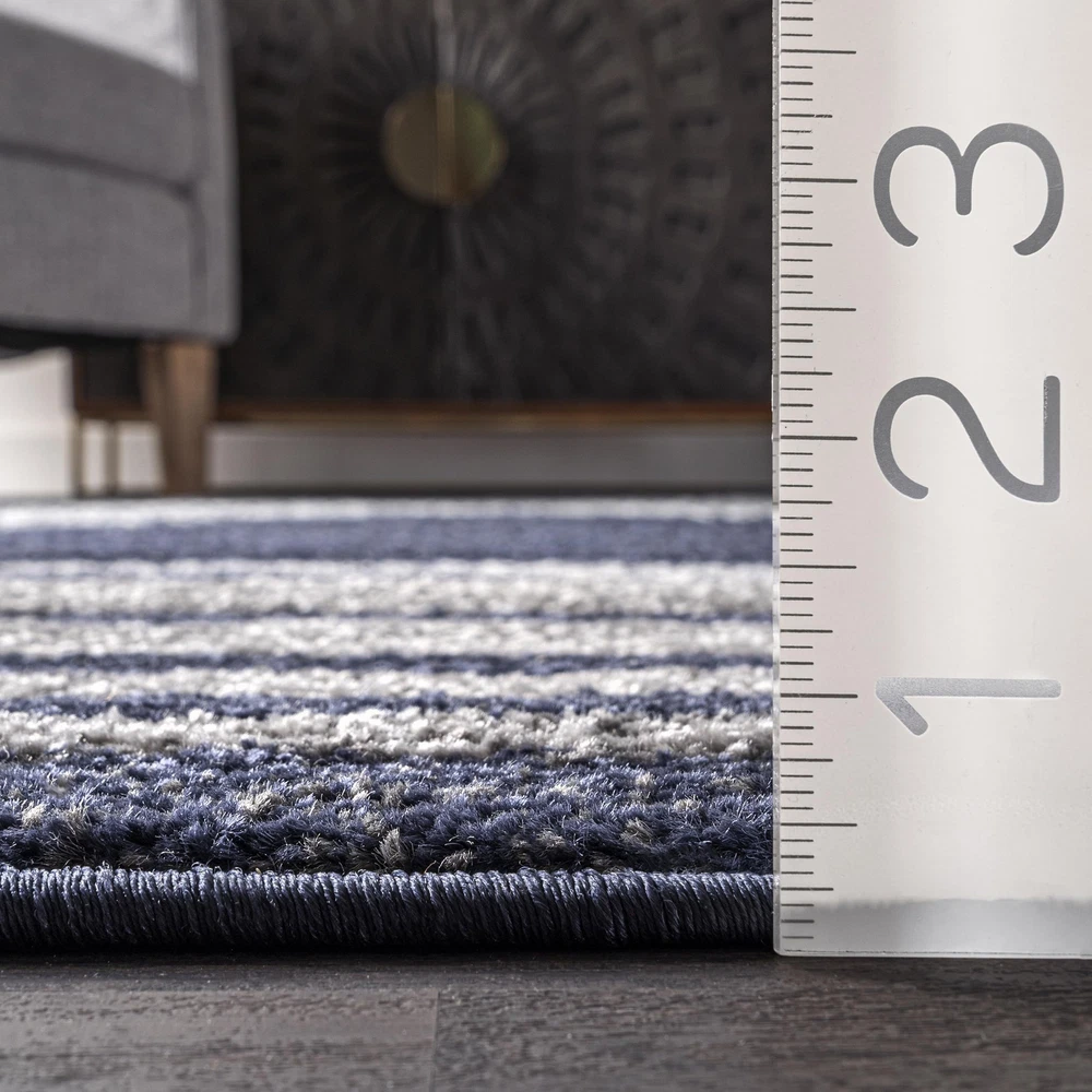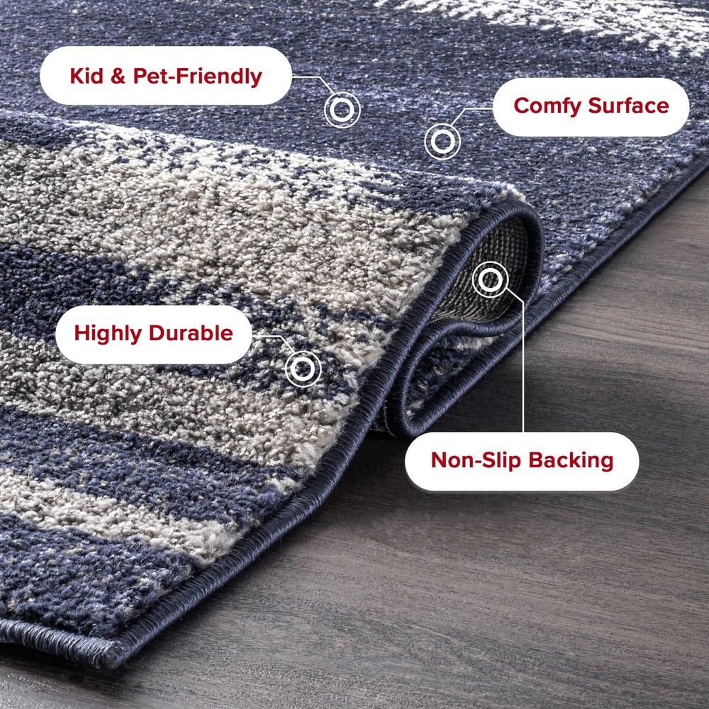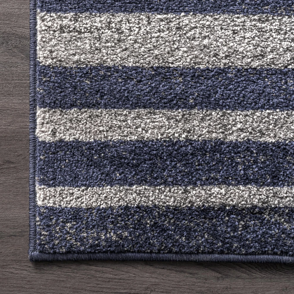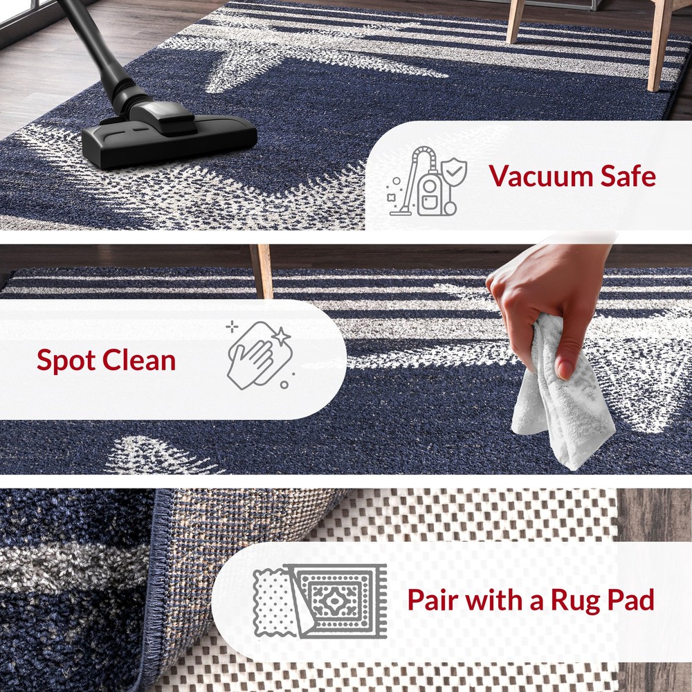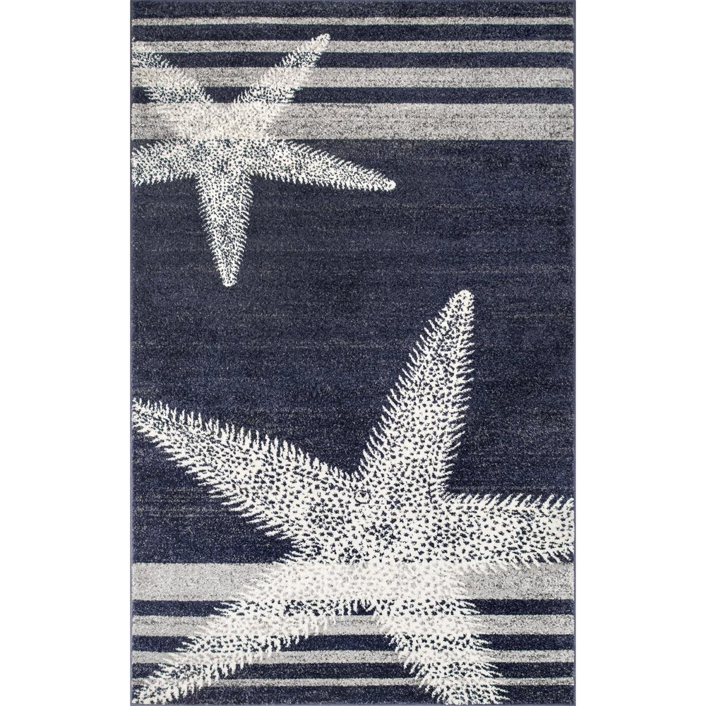 Add some charm to your home with this coastal striped area rug. Made for soft durable synthetic fibers, this rug is perfect for high traffic areas of your home. The starfish and striped pattern are the perfect addition to your current coastal or modern space. Impress your guests with our easy to care for and pet-friendly area rugs. 100% Polypropylene, made in Turkey Designed with resilience against everyday wear-and-tear, this rug is kid and pet friendly and perfect for high traffic areas of your home such as living room, dining room, kitchen, and hallways A medium 0.31” pile height allows for convenient placement in entryways and underneath furniture Easy to clean and maintain, we recommend vacuuming regularly and spot treating any mild stains with carpet cleaner We recommend using a rug pad to provide extra cushioning and to prevent any possible slipping and sliding on your flooring. Rug pads serve as protective layering piece for your floor and your rug from any wear and tear, extending the life of your rug