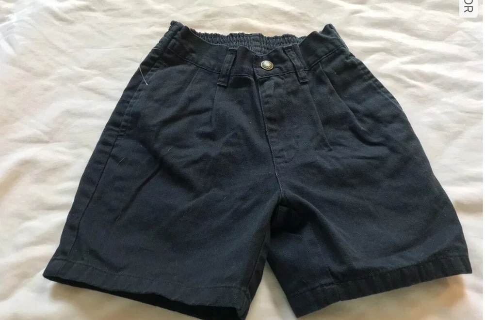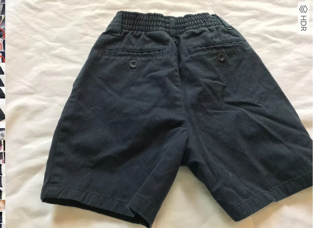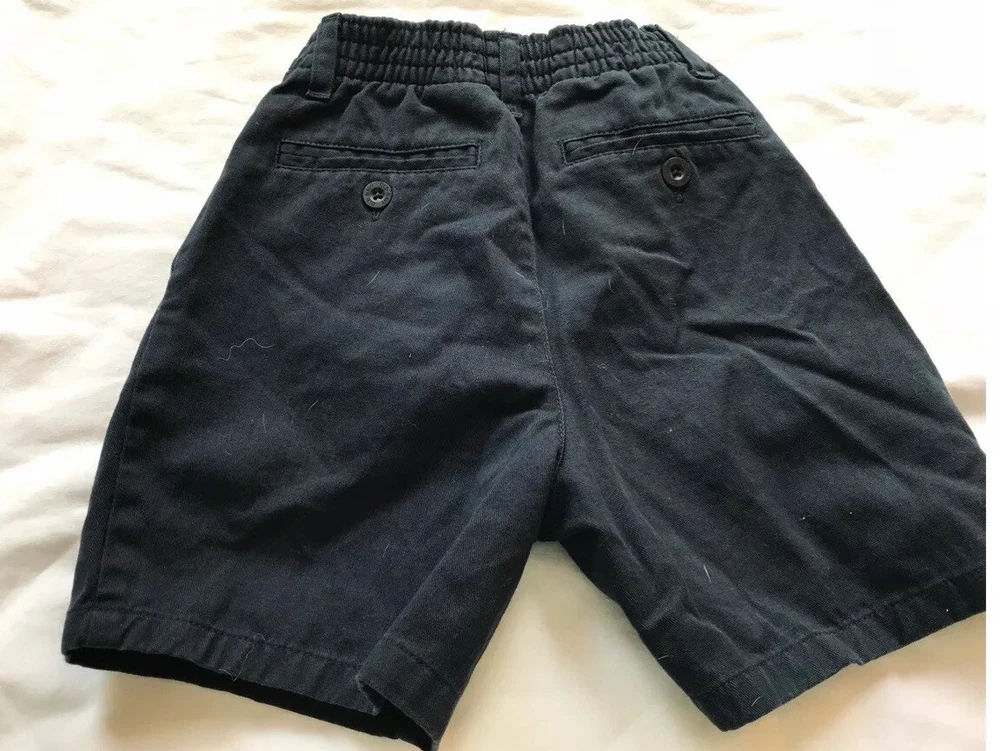 Preowned. Like new. Old navy Boys shorts Size 4. Navy Blue. Elasticized back. Zip front and snap. Pleated front. Side slash pockets and welted pockets in the rear. No holes, rips or tears from a smoke free home. Ask questions. See pictures. Combine with other items