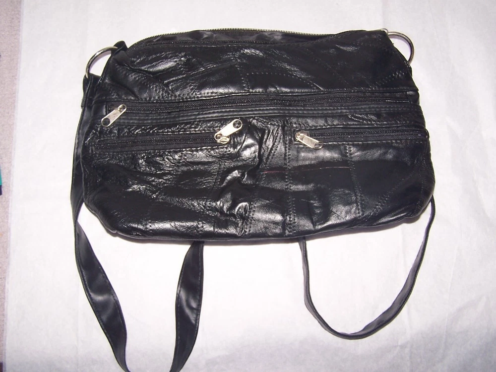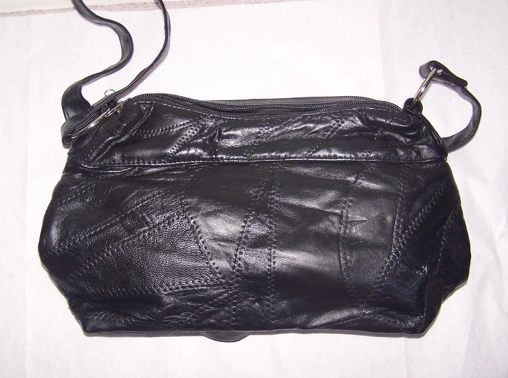 This patch work leather purse is a stylish accessory for any woman. The exterior is made of high-quality leather in a classic black color. The purse features a spacious interior, lined with soft polyester in a matching black color. The shoulder bag style makes it easy to carry, and the patch work design adds a unique touch to the overall look. Perfect for any occasion, this purse is a must-have for any fashion-forward woman.