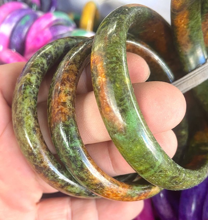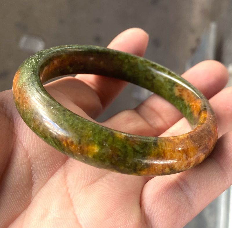 Peacock green rose peach blossom jade healing bangle bracelet 56-64mm