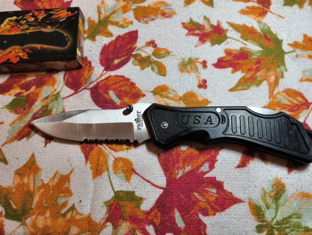 Handle Material: Plastic Blade Edge: Combination Original/Reproduction: Original Model: Buckshot Country/Region of Manufacture: China Type: Tactical Number of Blades: 1 Blade Range: 2.76 - 4in. Brand: Frost Cutlery Blade Material: Stainless Steel Color: Black