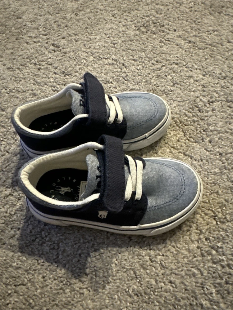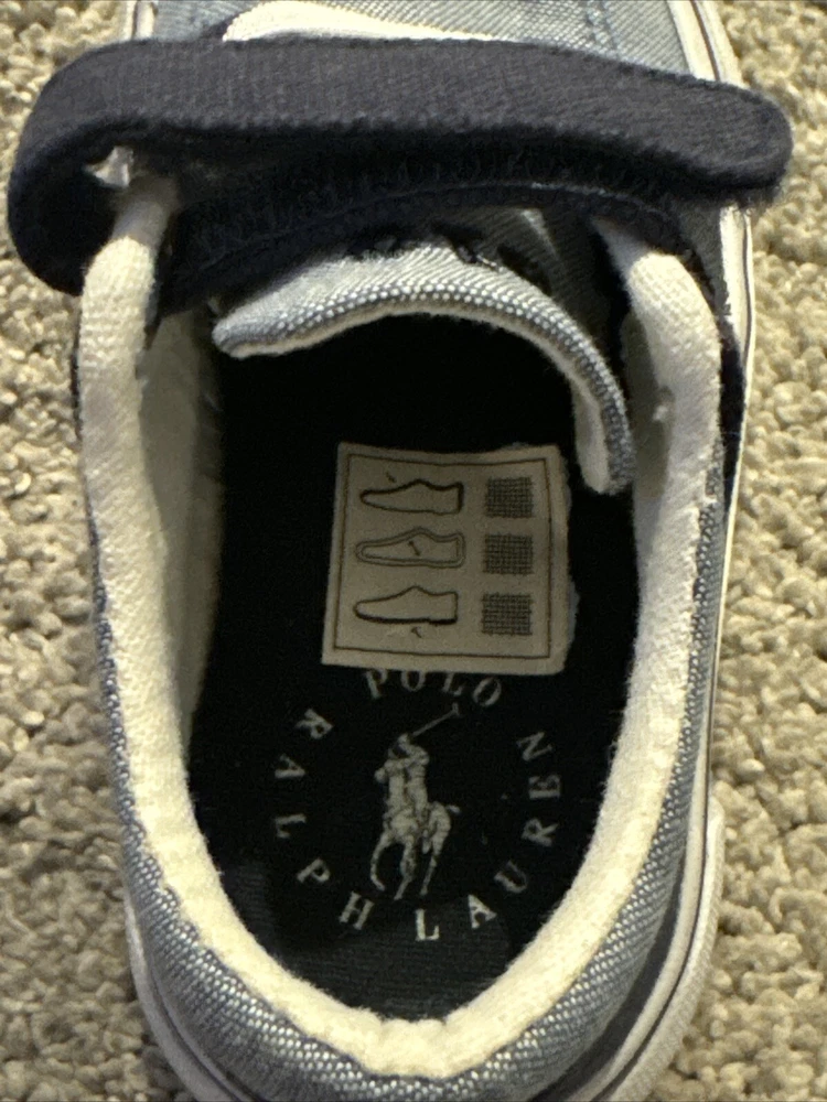 Looking for a stylish and comfortable pair of shoes for your little boy? Look no further than these Polo Ralph Lauren kids shoes in size 7. These shoes feature a lace-up and Velcro closure, making them easy to put on and take off, and perfect for any season - whether it's winter, summer, fall, or spring. The blue and gray color combination is both trendy and versatile, while the sneaker style ensures comfort and support. Ideal for boys who love to play and stay active, these shoes are a must-have addition to any wardrobe. So why wait? Order your pair today and step up your little one's shoe game!