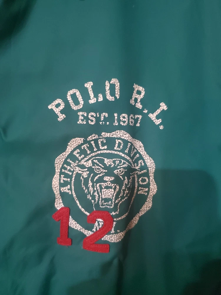 This Polo Ralph Lauren windbreaker jacket is a must-have for any stylish man's wardrobe. The jacket is made of high-quality nylon material that ensures durability and comfort. It comes in a striking green color that is perfect for adding a pop of color to any outfit. The jacket is designed with a regular size type, making it a perfect fit for most men. It is a versatile piece that can be worn for different occasions, whether it's a casual day out or a formal event. The jacket has a unique style that complements any outfit, making it a perfect addition to your wardrobe.