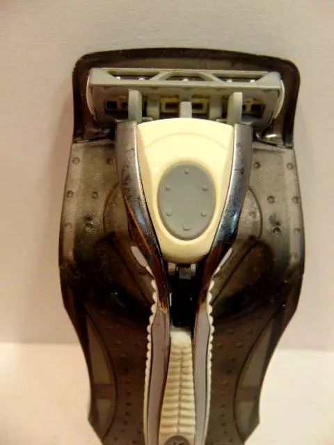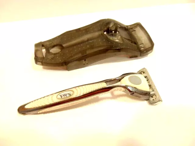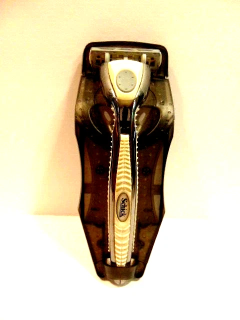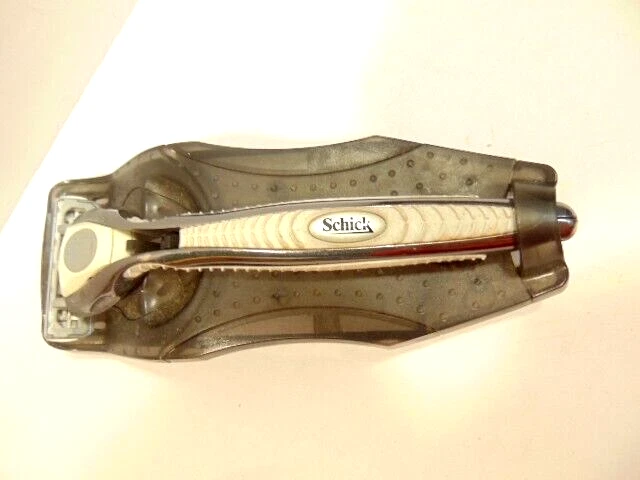 pre-owned gray Schick safety razor in plastic cradle