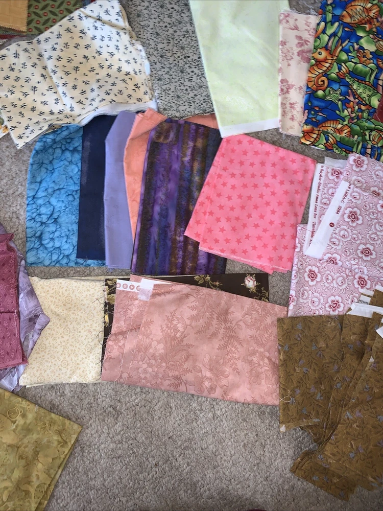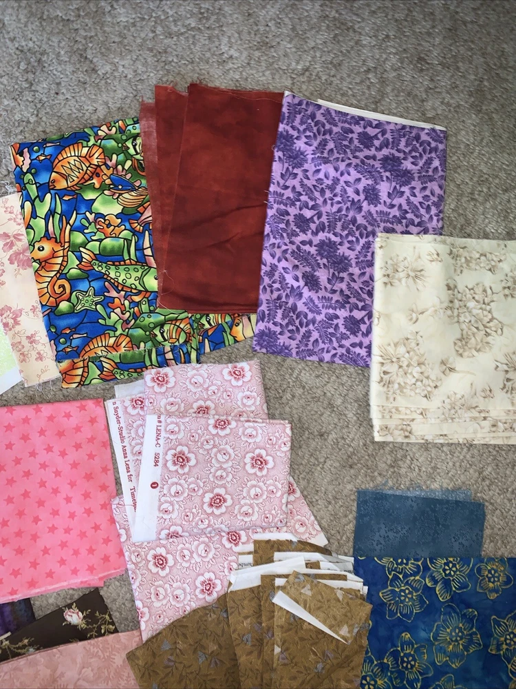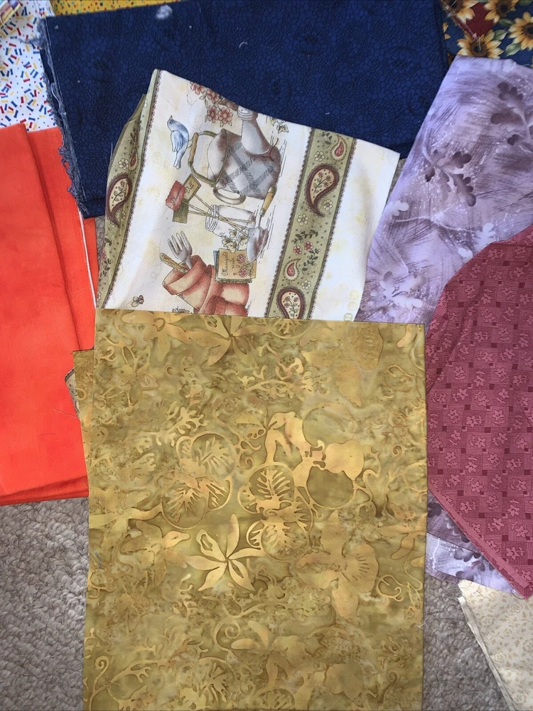 This lot of fabric scraps is perfect for any quilting project. Made of 100% cotton, these pieces are soft and durable, making them ideal for creating unique and beautiful quilts. The lot includes a variety of colors and patterns, suitable for any theme or style. Whether you are a seasoned quilter or just starting out, this lot is a great addition to your collection. With a range of lengths and amounts, you will have plenty of fabric to work with. Don't miss out on this opportunity to add some special touch to your next project.