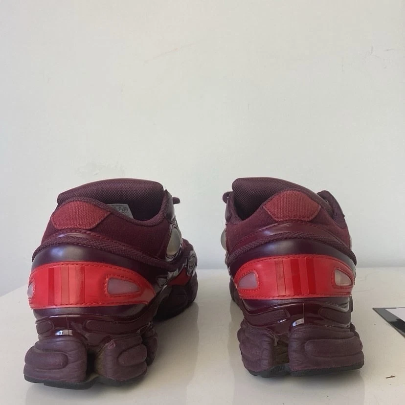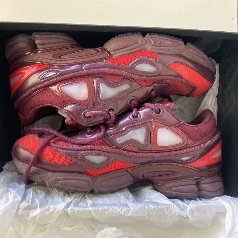 The Raf Simons Ozweego Three Burgundy sneakers are a stylish addition to any man's wardrobe. Featuring a bold red colour with an eccentric but wearable style, these shoes are perfect for everyday wear. With a size 8 AU and 9 US, these shoes offer both comfort and fashion. Made by the renowned designer Raf Simons, these sneakers are sure to make a statement wherever you go. Ideal for those who appreciate high-quality footwear that stands out from the crowd.