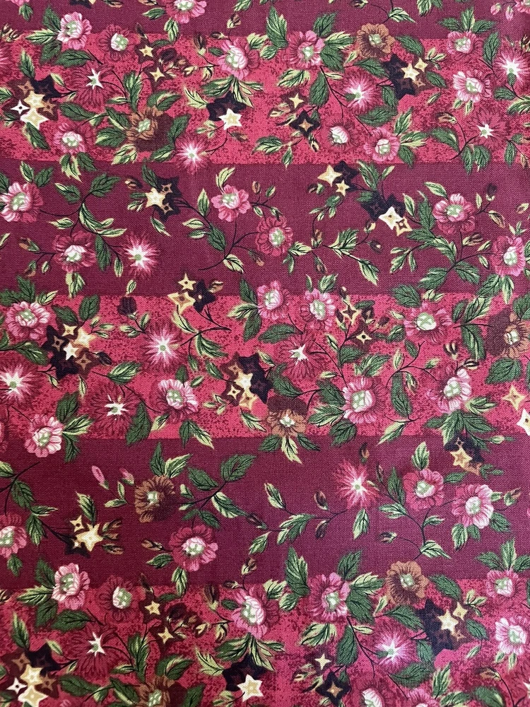 red striped floral heirloom reproductions circa 1840 ro gregg Northcott 2.5 yards. Comes as a little over 2.5 yards; 96”. Has a bit of a musty odor.