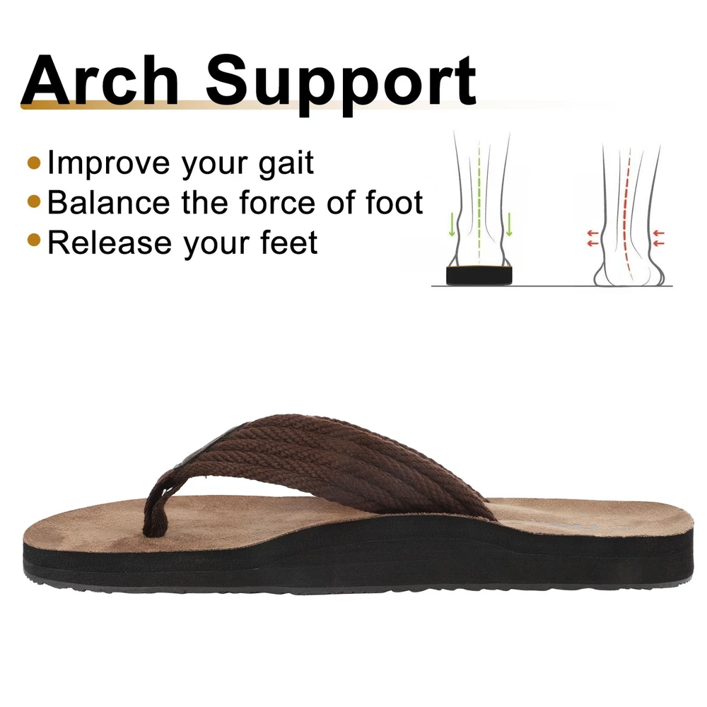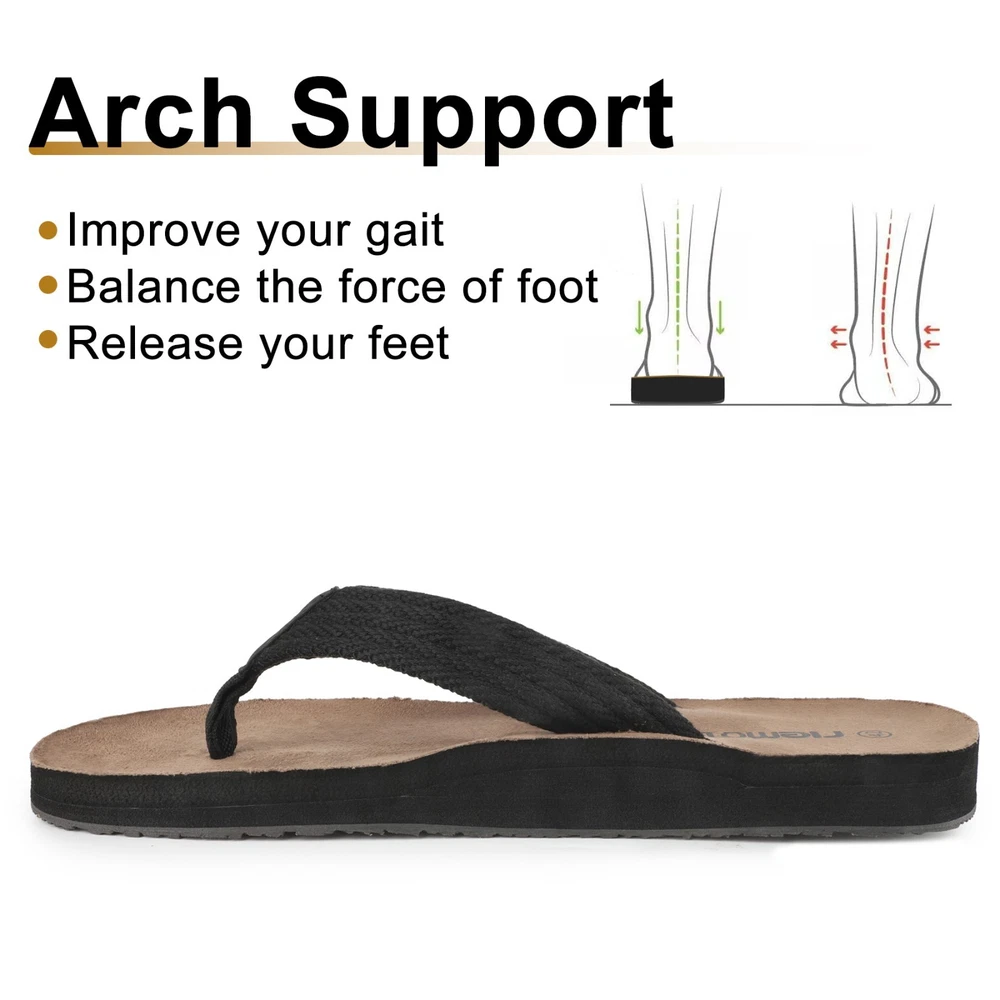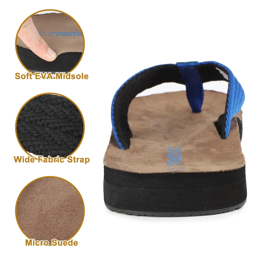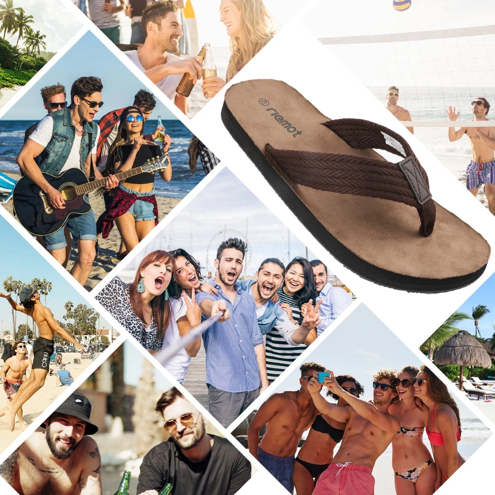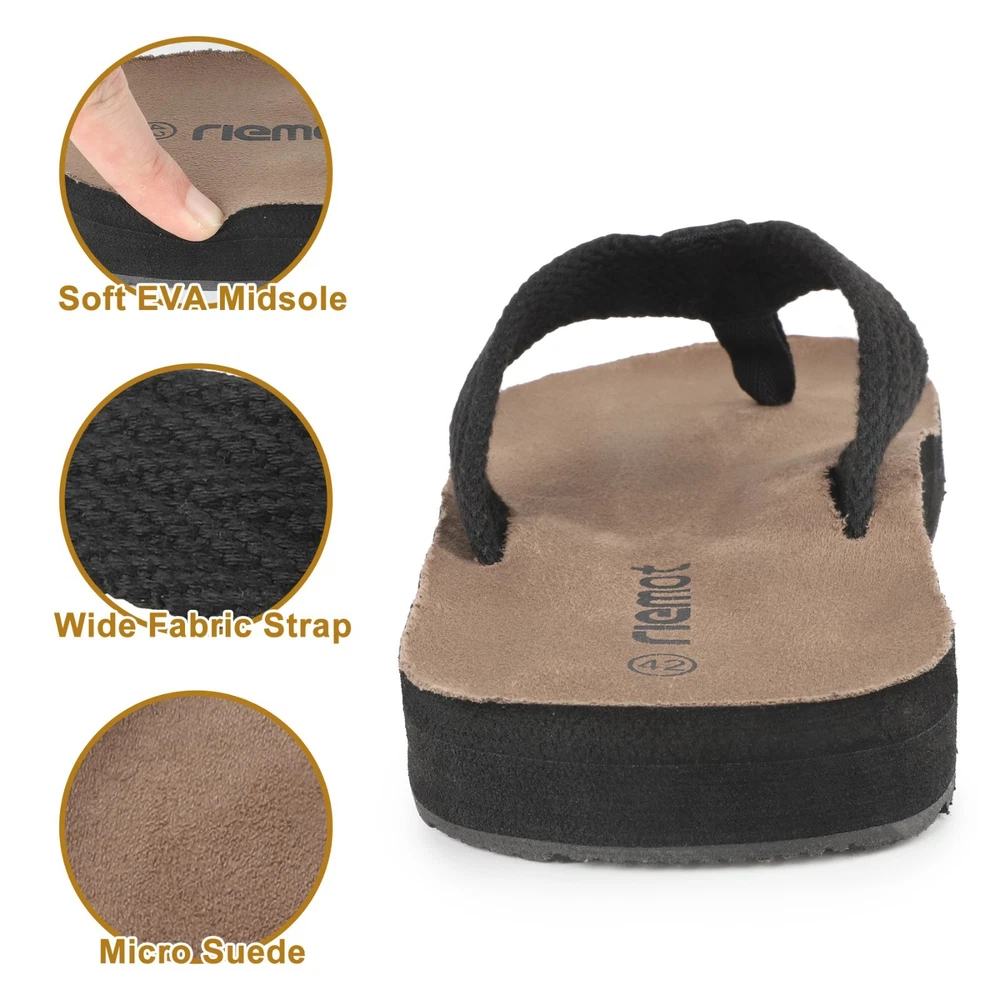 riemot Men's Thongs Arch Support Flip Flops Beach Sandals Lightweight Comfort Thongs The riemot Men's Thongs Arch Support Flip Flops are lightweight and comfortable sandals perfect for casual occasions. Featuring a slip-on closure and solid pattern, these sandals have a rubber outsole for non-slip performance. The synthetic upper and lining materials ensure durability and breathability, while the cushioned insole provides extra comfort. With arch support and a lightweight design, these thongs are ideal for outdoor activities during the summer, fall, or spring seasons. The riemot brand logo adds a stylish touch to these versatile beach sandals. SUPPORT&DURABILITY:riemot mens flip flops are sturdily constructed and breathable. The soft suede insole and arch support make this sandals men very comfortable. This flip flop slippers is designed to provide all-day support and cushioning with every step PREMIUM&EXCELLENT TRACTION:Premium TPR soles add to the durability of the flip-flops, and the slip-resistant rubber soles with a pronounced tread pattern provide excellent traction and stability on a variety of surfaces and terrains COMFORTABLE CANVAS STRAP: Optimised soft canvas strap provide a comfortable feel against your skin. We've optimised the toe area of the flip-flops to provide more room for your toes and ensure they are wide enough. Wear them whenever you want your feet to relax MADE FOR YOU: The classic flip flop sandals are spacious and comfortable and fit your feet firmly, giving you endless fun both indoors and outdoors. Suitable for spring, summer and autumn, especially for summer EASY CARE & VERSATILE: riemot 3 Point Flip Flops are ideal for everyday casual slippers, beach slippers, pool slippers and indoor and outdoor sandals. They are also easy to clean. Rinsing the flip flops with fresh water after travelling will make them more durable