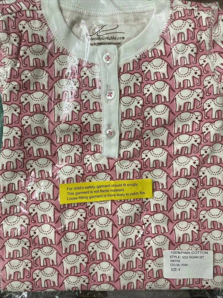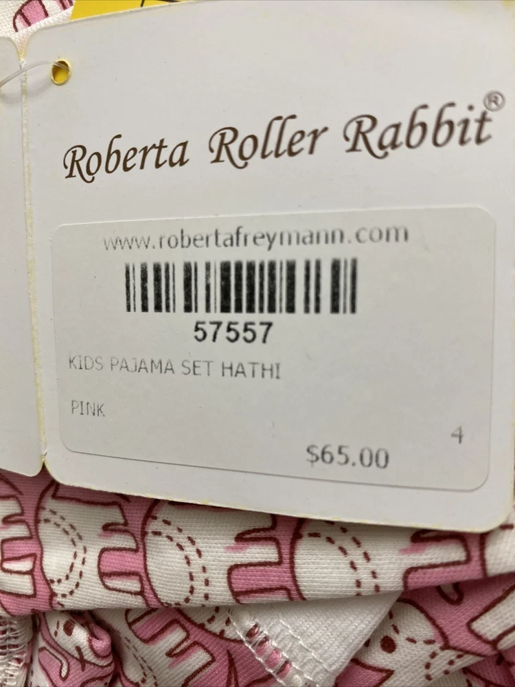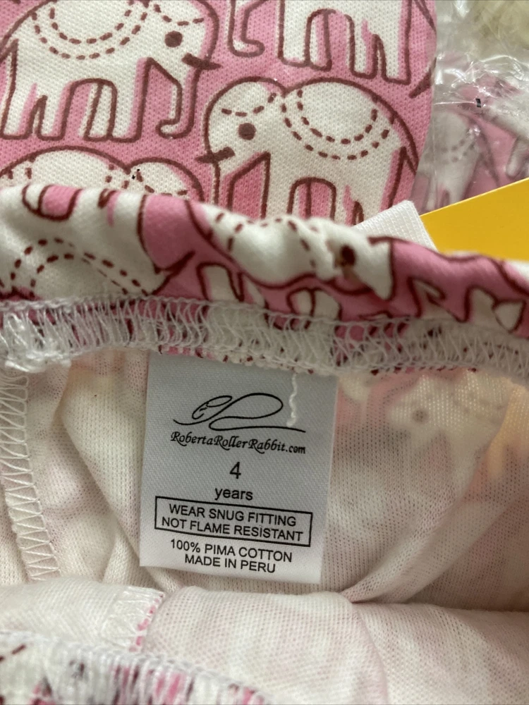 roberta roller rabbit kids pajama set Hathi pink sz4,NWT. But it’s smaller, better for sz2