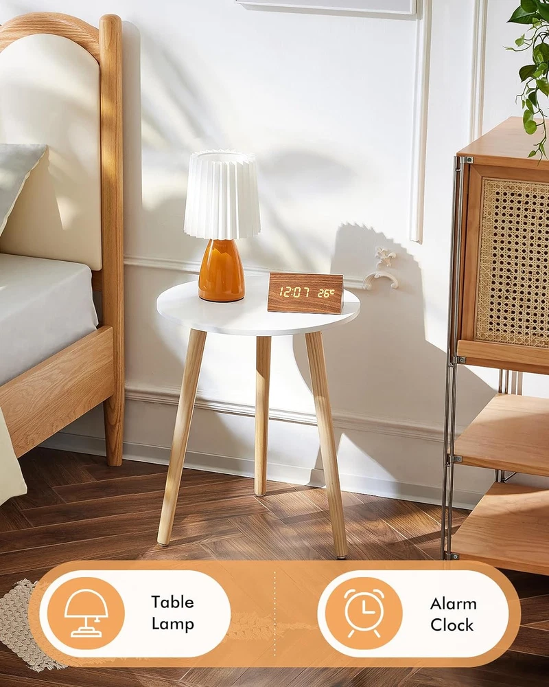 round Side Table, White Bedside Table Coffee End Table for Bedroom, Living Room,
