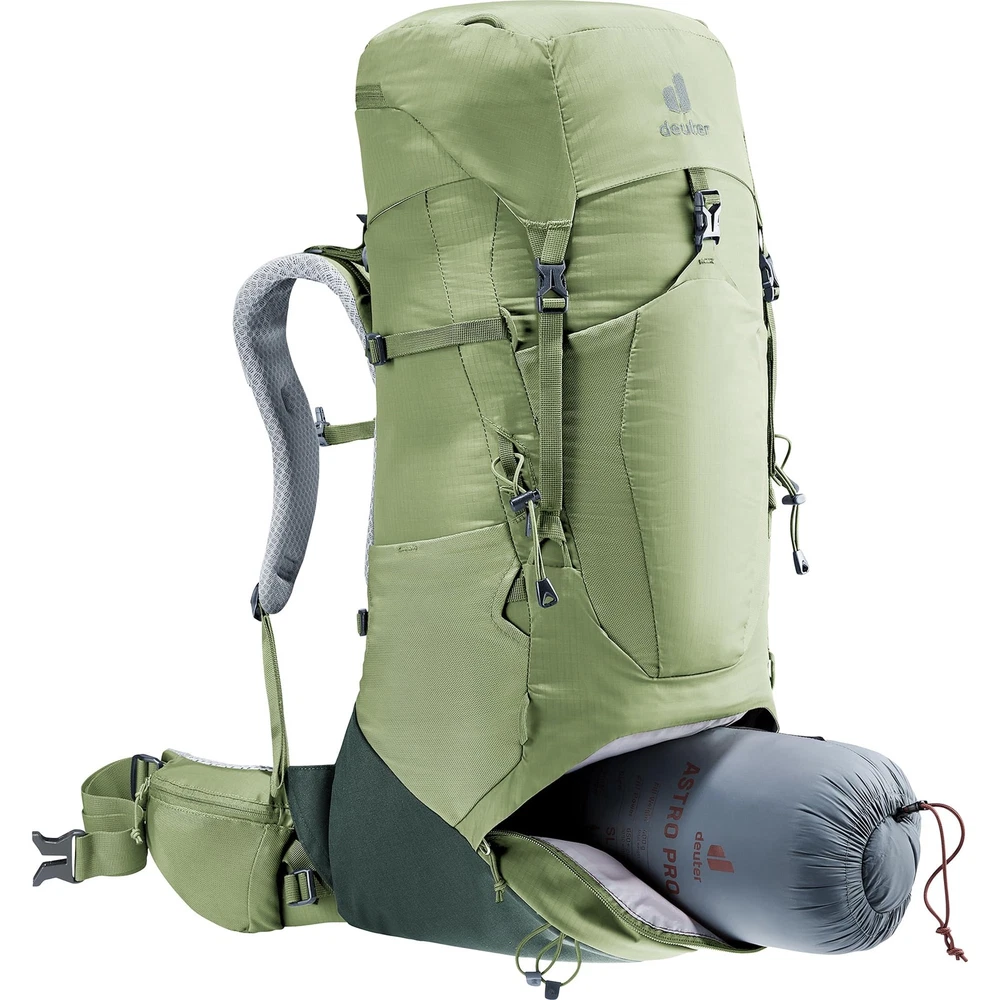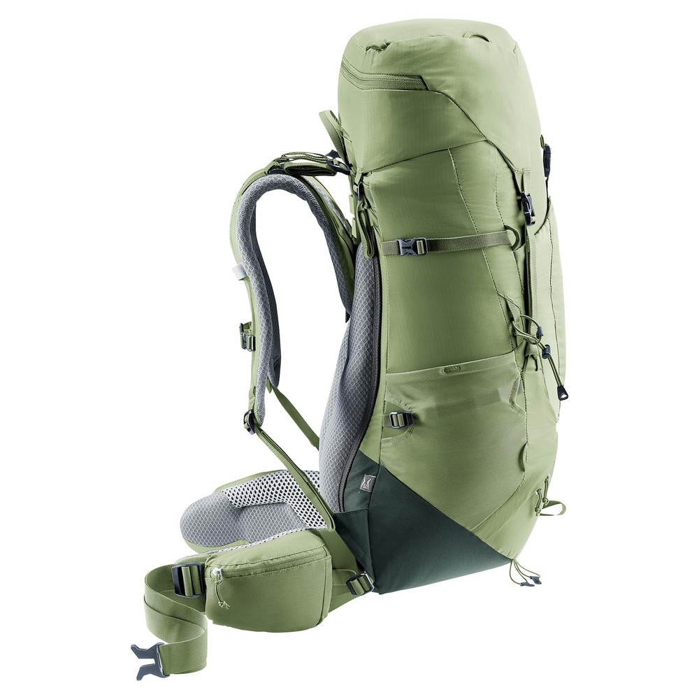 USE CASE: The Aircontact Lite is a ’s-specific 35 + 10-liter-by-volume backpack designed for ambitious long-distance hikers who value light weight and big comfort. It features the Aircontact back system for reduced perspiration rates, exceptional load transfer, and a secure, perfectly balanced fit. Ideal for hiking, world travelers, long-distance backpacking, and extended travel. Specs - Weight: 3.2 lbs., Dimensions: 27 / 11 / 9 (h x w x d) in. SLIM LINE/NARROW FIT: The SL series is tailored with a shorter cut, ergonomically shaped shoulder straps with soft edges, and a pronounced S-shape that tapers off narrowly at the ends to ensure a snug fit around the shoulders. Its conically shaped hip fins seamlessly hug the hips for optimal comfort specifically for individuals with more narrow frames. AIRCONTACT BACK SYSTEM: The essence of our Aircontact system ensures an efficient method of carrying heavy loads whereby the weight is brought close to the body, aligning with the center of . This configuration enables complete pack control and facilitates effective load transfer. Additionally, our Aircontact cushions, crafted from unique hollow chamber foam, ensure exceptional ventilation by capitalizing on the pump effect generated with every movement. COMFORTABLE FIT: Vari Quick adjustable back length, continuously adjustable chest strap, load adjustment straps and ergonomically padded hip fins for added stability and comfort. A pull-forward system for hip fin adjustments, and side compression straps which can be attached below the side pocket for a secure carry. ENHANCED FEATURES: Lightweight X-frame for good load transfer, height-adjustable lid for expandable volume, detachable lid, docking loops for helmet holder, ice axe and trekking pole attachment, removable rain cover, internal valuables pocket, separate bottom compartment, stretch inner compartment, key clip, SOS label, stretch mesh pockets, and zippered hip fin pocket storage and with 3-liter drinking system/bag (not ).