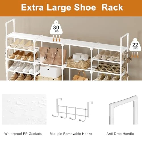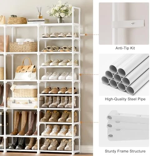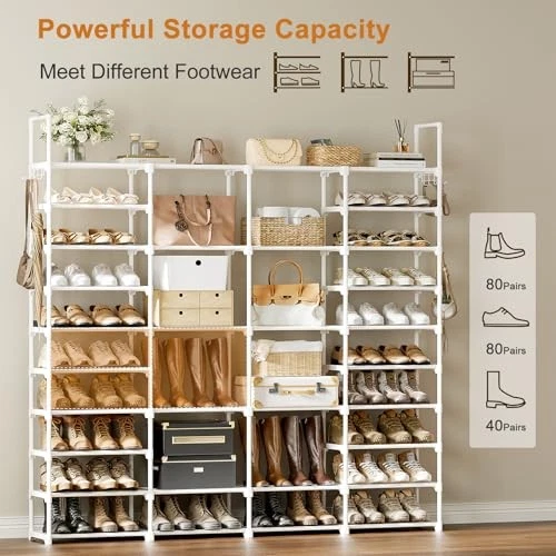 4-Row 8-Tier Large Shoe Rack Organizer for Tall Shoe Storage