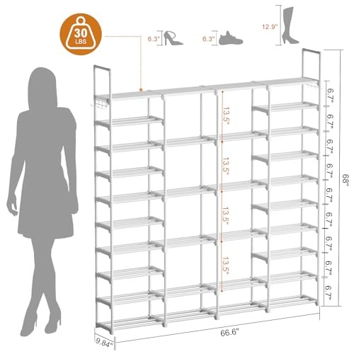 Menu 1. We require immediate payment. 2. We currently accept payment via eBay managed payments only. 3. Once payment is cleared, we will dispatch your shipment within 1-3 business days. Please refer to the "Shipping" tab for more information regarding shipping speed to your destination. 4 Row 10 Tiers Extra Large Shoe Rack 72-80 Pairs Big Tall Metal Shoe Shelf, Heavy Duty Organizer for Closet Entryway, Boot Rack Storage Stackable Stand Product description Store Up to 72-80 Pairs of Shoes: The tall shoe rack is 66.60x9.84x68.00 Inches.The heightened design has more space and can hold 72-80 pairs of shoes to keep your limit space well organized. Different height levels fit boots, high heels, shoe box or other larger accessories. Durable & Sturdy Structure: The large shoe storage is made of powder-coated metal tubes and high quality plastic parts. Stable durable sturdy shoe tower shoe shelf. The diameter of metal tube is 13mm, which enables this big shoe rack load much heavier duty and more durable while using. And the powder-coated finish does not rust or corrode with normal use, it is perfect for your everyday organization. 10-Tier Shoe Rack: Featuring a compact profile, you can easily set this metal shoe rack in the hallway, living room, bedroom, or garage. It helps you maximize your vertical space while saving more floor space for other items—good news for small areas! Easy To Assemble: We have detailed installation instructions, all accessories are coded, and the location of each accessory is marked.Comes with user manual to help you assemble the extra large shoe rack quickly and easily. Customizable Design: Arrange the tall shoe organizer layout to match your items' height. It can even be split into 2 or more racks. Tailor it to cater to your unique storage requirements, whether in a closet, garage, or storage room! PLEASE MESSAGE US IF YOU HAVE ANY OTHER QUESTIONS, AND MANY THANKS FOR READING ALL OF THIS. Copyright ©#. All Rights Reserved.