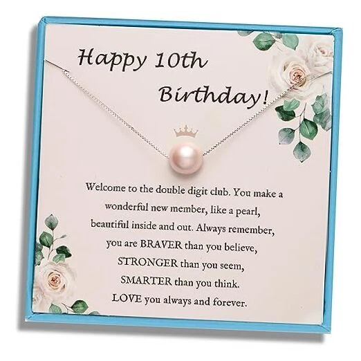 Return Policy Fast Delivery Trusted seller 10th Birthday Gifts for Teens Sterling Silver Pink Pearl Necklace as Gifts for 10 Year Old, Adjustable Length 10 Birthday Ideas for Teens Trendy 2024 Product Description Gifts for 10 Year Old Birthday: 10th birthday is an important milestone! Present your daughter/granddaughter/niece this pearl necklace on her 10th birthday to show your deep love and wish for her sparkle and fortitude just like a pearl in the days to come. 10 Yr Old Gift Ideas: Our pearl necklace, made of S925 sterling silver and sparkling simulated shell pearl, is safe for the sensitive skin of your lover. It won’t turn your neck green or itch, ensuring true comfort. A wonderful choice for a 10th birthday gift! Birthday Gifts for 10 Year Old: Teen necklace comes with everything you need to gift including thoughtful card message, jewelry care tips, a polish cloth and a nice gift box. A ideal and meaningful gift as teenage gifts for 10 year old. Birthday Necklace for 10 Year Old: Sparkling pendant necklace is a fabulous jewelry for a 10th birthday. It has a chain length of 16 inches plus 2 inches extension chain. Ideal jewelry for you or as a suitable 10 year old birthday. After-sale Service: We replaced the chain. The new chain is slightly different than the previous one, but it will be stronger. Any concerns about the order will be answered within 24 hours. We want you to be a customer for life! Shipping Returns Payment Shipping Shipping is FREE to all addresses other than APO/PO boxes in the lower 48 states. All our stock ships from US-based warehouses. Shipped via USPS or UPS (depending on location and package weight) Unless stated otherwise, all orders will ship within 24-72 hours of your payment being processed. Check our feedback to see the great reviews of FAST shipping we offer. Returns Seller does not accept returns Payment We currently accept payment via eBay managed payments only. Once payment is cleared, we will dispatch your shipment within 1-3 business days. Please refer to the "Shipping" tab for more information regarding shipping speed to your destination.