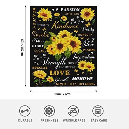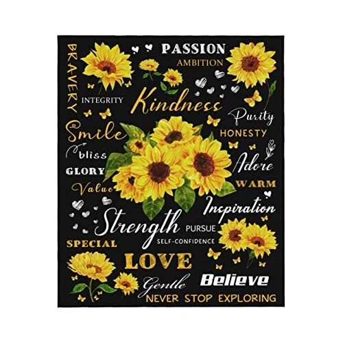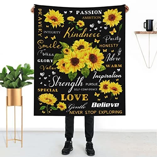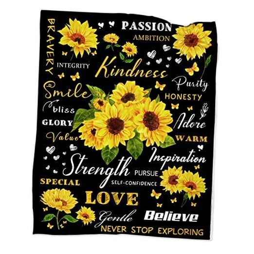 Return Policy Fast Delivery Trusted seller Sunflower Gifts for Women, Sunflower Blanket 50''x60'' Positive Healing Throw Blanket, Christmas Birthday Gift for Women Blanket Soft Cozy Flannel Sunflower Decorations Blanket Mother's Day Product Description Best Sunflower Gifts: This sunflower blanket is uniquely designed with good printing effect, which is a good healing sunflower gift for women yourself, parent, grandparent, husband, wife, friends, boss, or coworkers when they retired Size: 60x50 inch. Perfect size suitable for all ages and convenient to carry, just roll it up, you can take this lightweight throw to anyw Material: This sunflower gift blanket is made of polyester flannel. It’s more soft, cozy, warm, and lightweight. The meaning of this blanket is not only to bring warmth, but also to bring a feeling of smile, courage and love Multi Occations: This sunflower blanket for women can be widely used as anniversary gift, retirement gift or other festival gift like Thanksgiving and some special days. Also it is pratical for daily use for room, sofa, picnic, beach, camping Washing Instructions: Machine wash cold separately using delicate cycle and mild detergent. Do not bleach. Machine dry separately on gentle cycle. Do not iron Shipping Returns Payment Shipping Shipping is FREE to all addresses other than APO/PO boxes in the lower 48 states. All our stock ships from US-based warehouses. Shipped via USPS or UPS (depending on location and package weight) Unless stated otherwise, all orders will ship within 24-72 hours of your payment being processed. Check our feedback to see the great reviews of FAST shipping we offer. Returns Seller does not accept returns Payment We currently accept payment via eBay managed payments only. Once payment is cleared, we will dispatch your shipment within 1-3 business days. Please refer to the "Shipping" tab for more information regarding shipping speed to your destination.