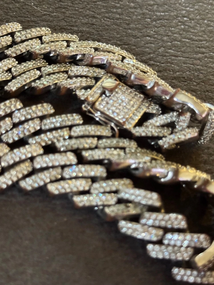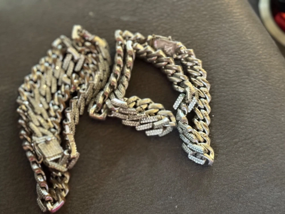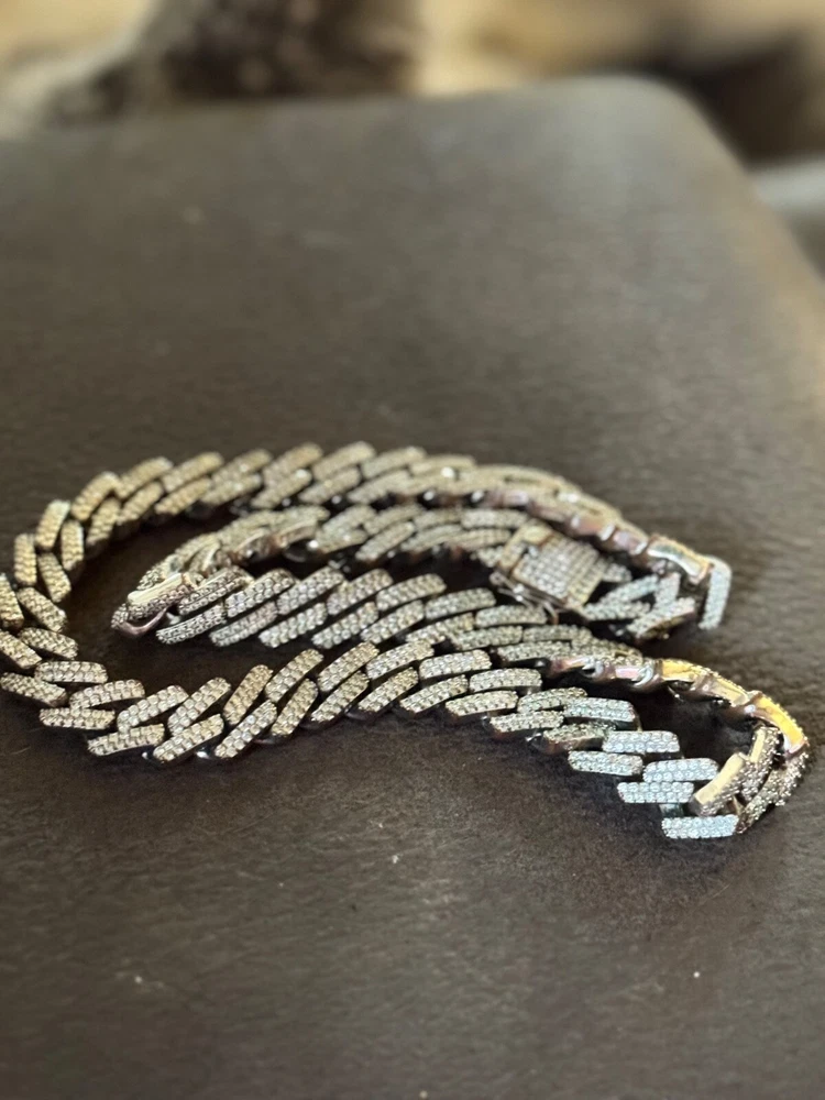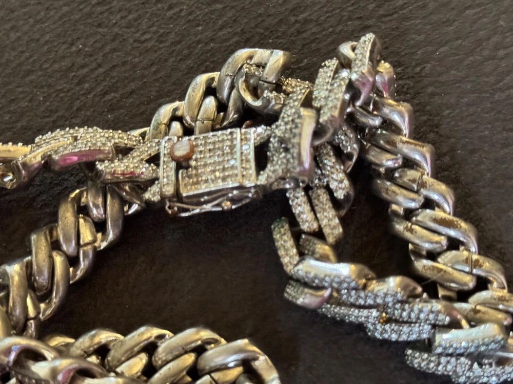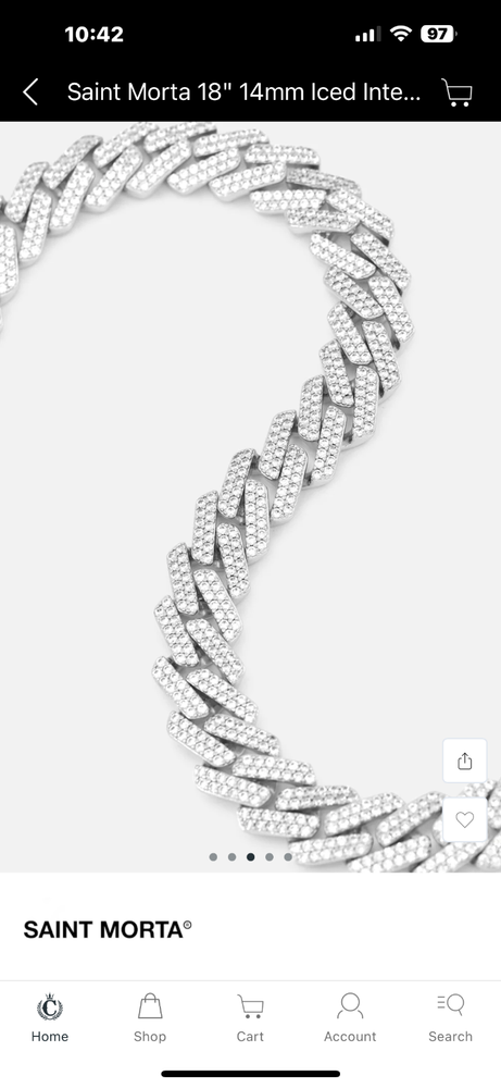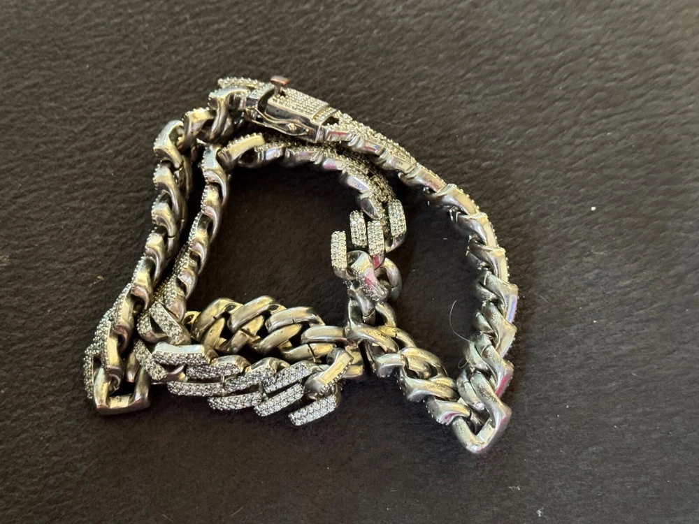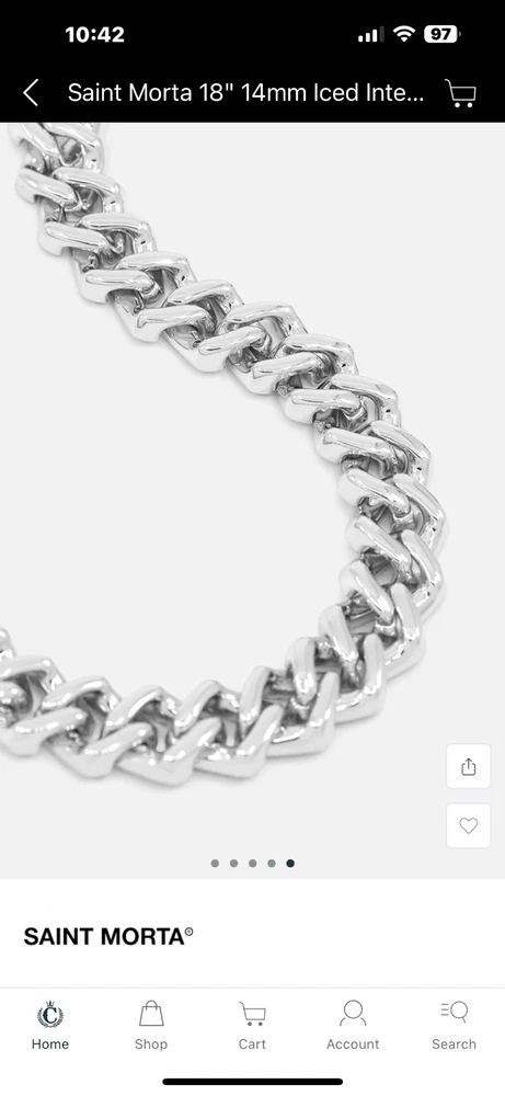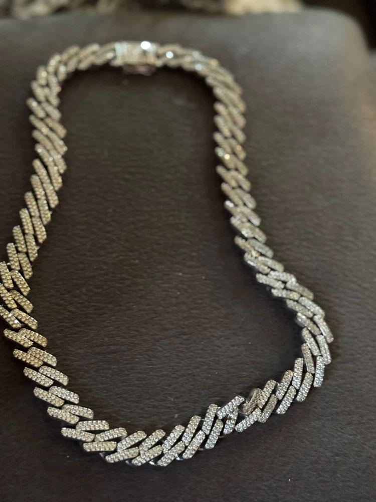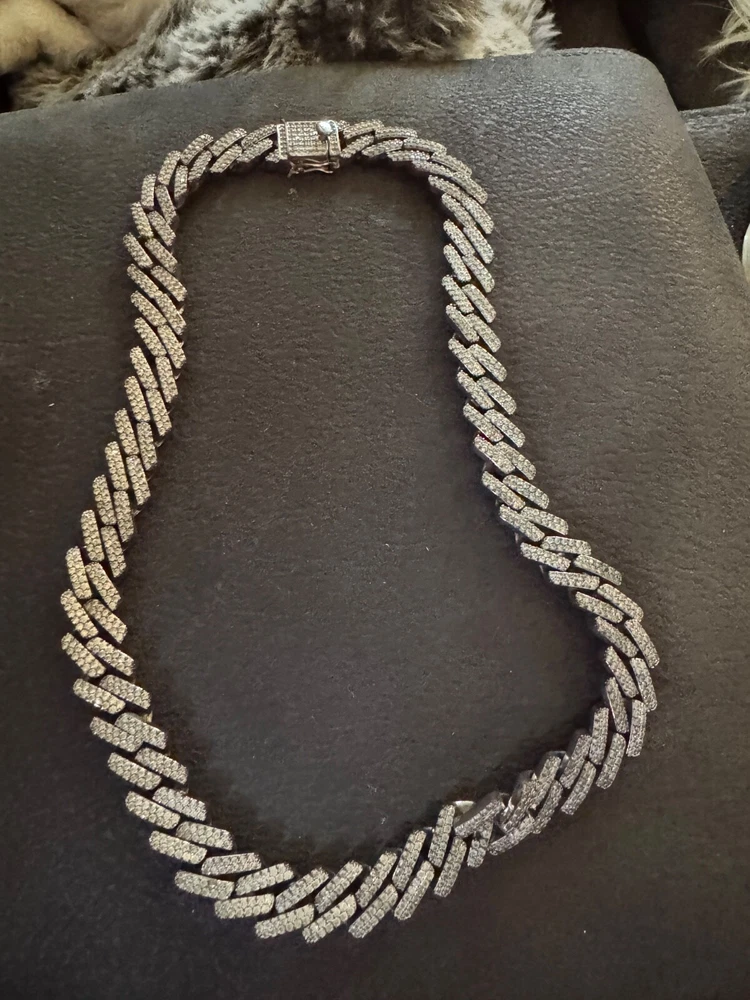 The Saint Morta chain is a stylish and statement-making piece of jewelry that features an 18" iced Cuban interlink chain with a cubic zirconia main stone. This unisex necklace is designed for those who want to make a bold fashion statement, with its silver color and unique chain style. Perfect for those looking to add a touch of luxury and edginess to their outfit, this necklace is a versatile piece that can be worn for various occasions.
