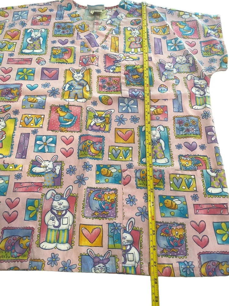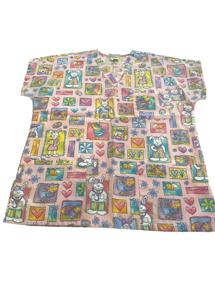 This Easter Bunny Pink scrub top from SB Scrubs is the perfect addition to your work wardrobe. Made with high-quality materials, this top is both comfortable and durable. The medium size fits just right and the pink color adds a pop of fun to your uniform. Featuring an adorable Easter Bunny design, this top is perfect for nurses, X-ray technicians, vet techs, and other healthcare professionals. It's also a great choice for anyone who wants to add a touch of whimsy to their work attire. Get yours today and show off your personality on the job!