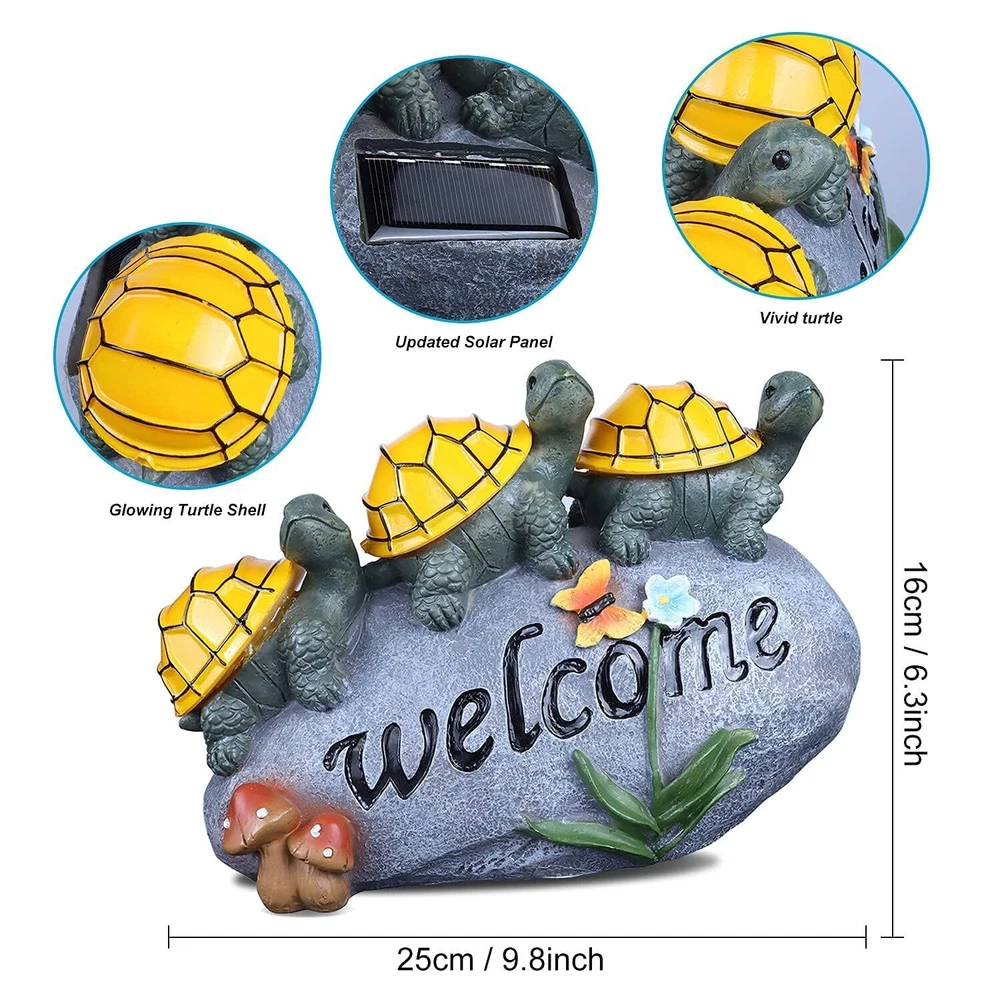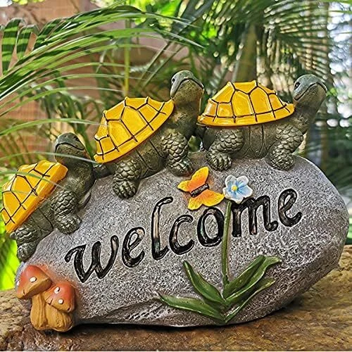 đ˘ăAdd an ecological touch to your Fall gardenăEvery garden statue and figurine is made of long-lasting resin and coated with UV-resistant paint. Making it solid and lasting. The garden turtles decorations to welcome guests onto your gardenălawn ă yard ă pond during the Thanksgiving Christmas and illuminate at night with fairy-tale colors. đ˘ăEnergy Efficiencyă100% solar-powered. Turn on the power switch before use, solar Turtles statue will automatically charge and store energy during the day, and at night (in the dark) the Garden Turtles will light up automatically (warm light) to illuminate your Fall garden, which will save you time and electricity bills. đ˘ăHigh-Quality & Waterproof Materialsă Finished with a resistant ip44 coating, this solar garden decorations is built to withstand all types of weather conditions. Color fading, water and frost neednât be a concern with this durable resin, outdoor Fall garden decor. It is sure to brighten up your Outdoor GardenăyardăLawnăpondăpatio. đ˘ăWarm GiftsăSize: 9.8 "L x 6.3" W x 3.9" H. The garden dĂŠcor figurines is one of the best garden gifts you can give. This lawn ornament is a perfect gift for your family and friends for Thanksgiving Christmas holiday,birthdays, weddings and housewarming. This charming outdoor statue will also add charm to your garden and lawn decor. Light up the fairy tale world. đ˘ă180 DAYS FREE REPLACEMENTă We want you to love this addition to your garden and home decor. If for some reason you are not completely satisfied, we offer refunds and returns.180 days Free Replacement.