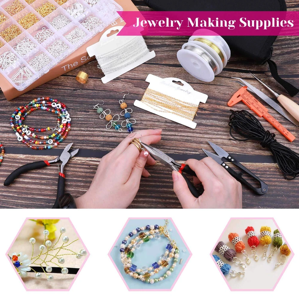 shynek Jewelry Making Kits for Adults, Jewelry Making Supplies Kit with Jewelry Making Tools, Earring Charms, Jewelry Wires, Jewelry Findings and Helping Hands for Jewelry Making and Repair 【Include All You Need】Shynek jewelry making supplies kit includes 3 jewelry pliers, 2 rolls of copper wire, 1 elastic string, 1 waxed necklace cord, 2 rolls of necklace chain, 6 needles, 2 tweezers, 1 caliper, 1 awl, 1 jump ring opener, 1 thimble ring, 1 thread scissors, 1 tape measure, 3 needle threaders, 1 zip pouch, 1 adjustable helping hands, 1830Pcs jewelry findings, Including the basic tools and findings you need for most projects for earring making, necklace repair and bracelet fix 【Superior Beading Pliers】The jewelry repair tool kit has 3 necessary jewelry pliers: round nose plier, wire cutting plier and chain nose plier. Each plier has double leaf spring and non-slip handles which make them effective and safe for use 【Various Types of Jewelry Making Accessories】Totally 1830 pieces different styles of jewelry findings include open jump rings (4mm, 5mm, 6mm, 8mm), lobster clasps, eye pins, screw eye pins, crimp beads, earring hooks, ribbon ends, cord ends and rubber earring back 【A Must Have Jewelry Making Supplies】The jewelry necklace repair kit and Jewelry making Charms make jewelry making and necklace repair easy and smooth. It’s perfect for either professional or just amateur jewelry making lovers and starter to do their jewelry making project, jewelry beading project, jewelry repair and other DIY projects 【Easy Organized】The jewelry wire wrapping kit comes with a premium black zip pouch, so you can keep your tools handy, organize and safe, and no worry about losing tools or accessories Shipping We offer FREE shipping on all orders! We use a selection of shipping services such as UPS, FedEx, USPS etc. We only ship to the lower 48 states, no APO/FPO addresses or PO Boxes allowed. Local pickups and combined shipping options are not provided at this time. Return You can return a product for up to 30 days from the date you purchased it. Any product you return must be in the same condition you received it and in the original packaging. Please keep the receipt. Payment We accept payment by any of the following methods: PayPal Please pay as soon as possible after winning an auction, as that will allow us to post your item to you sooner! Feedback Customer satisfaction is very important to us. If you have any problem with your order, please contact us and we will do our best to make you satisfied. Contact Us If you have any queries, please contact us via ebay. We usually respond within 24 hours on weekdays. Please visit our eBay store to check out other items for sale! Thank you for shopping at our store.