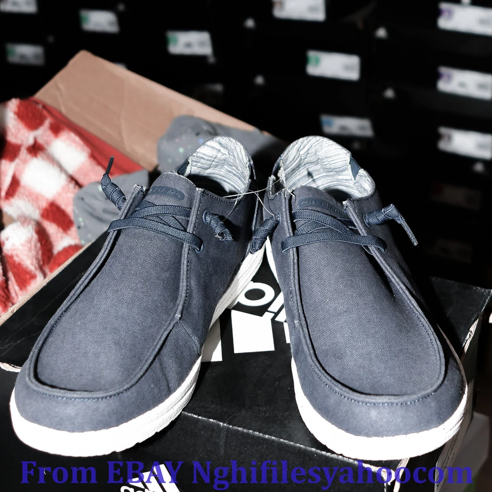 Skechers® Colors: Blue Size : 12 NO shoes box Stitched seam detail Laced front panel with stretch laces Knotted lace ends Dual side stretch fabric panels for slip-on fit Air-cooled memory foam insoles Relaxed Fit® design Made in China Content: Upper: Canvas Outsole: EVA You get the pairs in the ads photos. SHIP ASAP.
