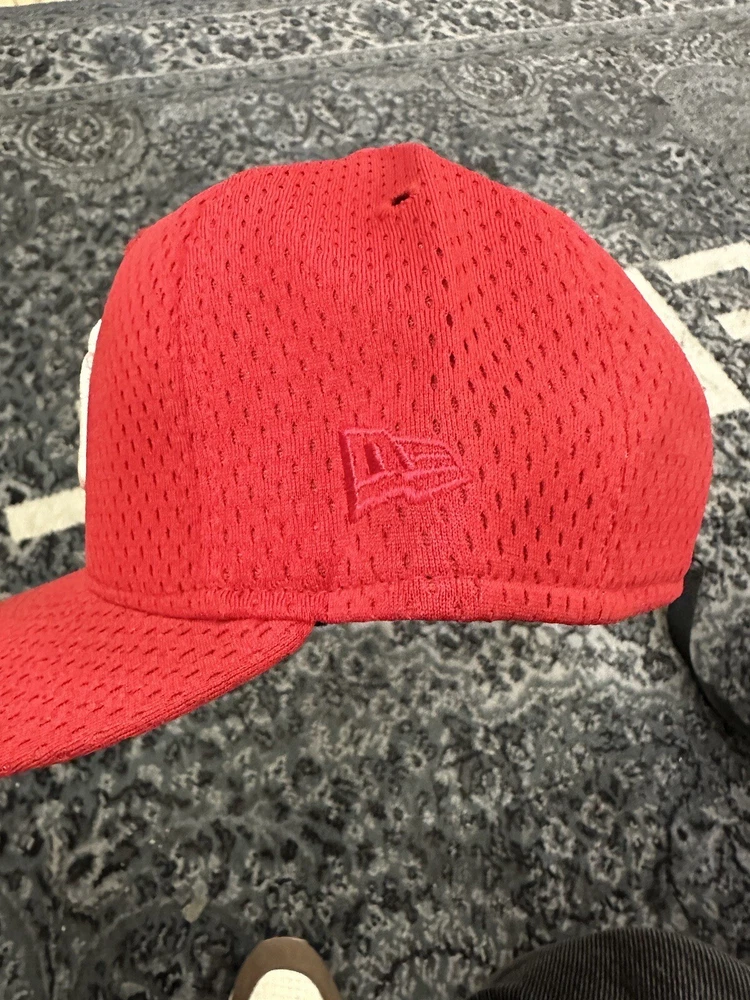 size 7 red mesh yankkes fitted hat