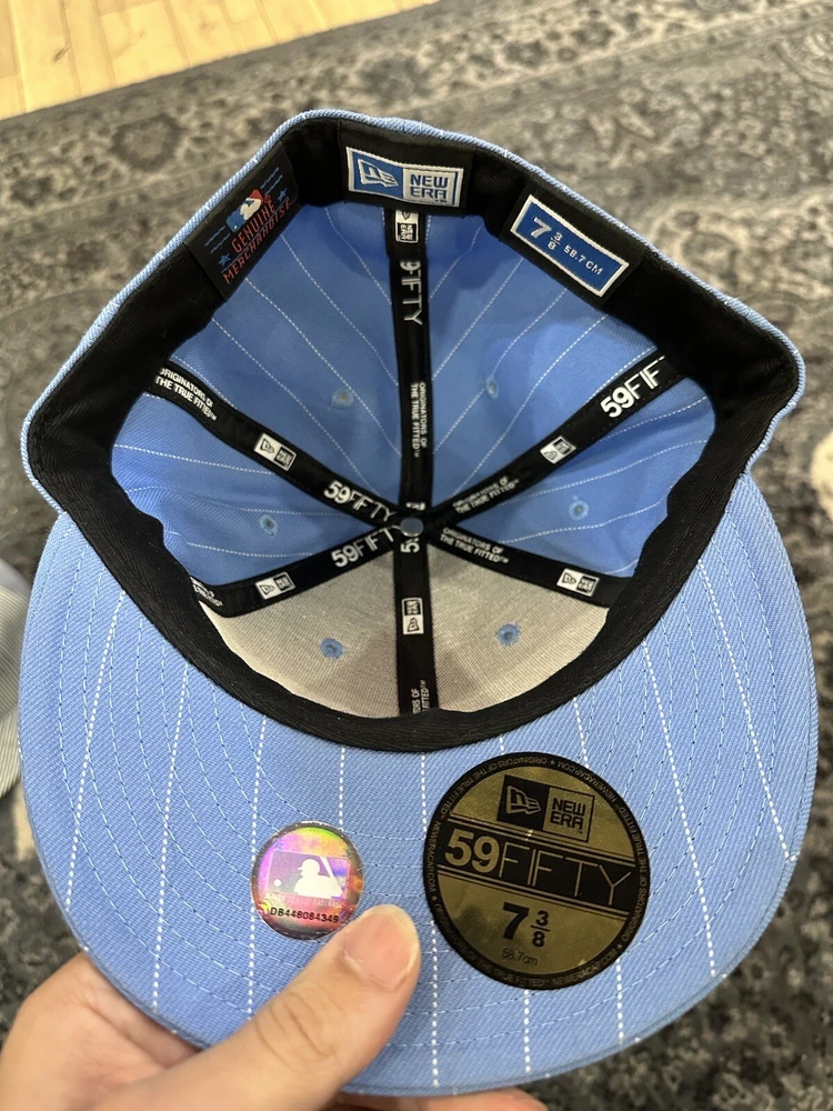 Brand: New Era Size: 7 3/8 Pattern: Striped Color: Blue Department: Men Style: Baseball Cap