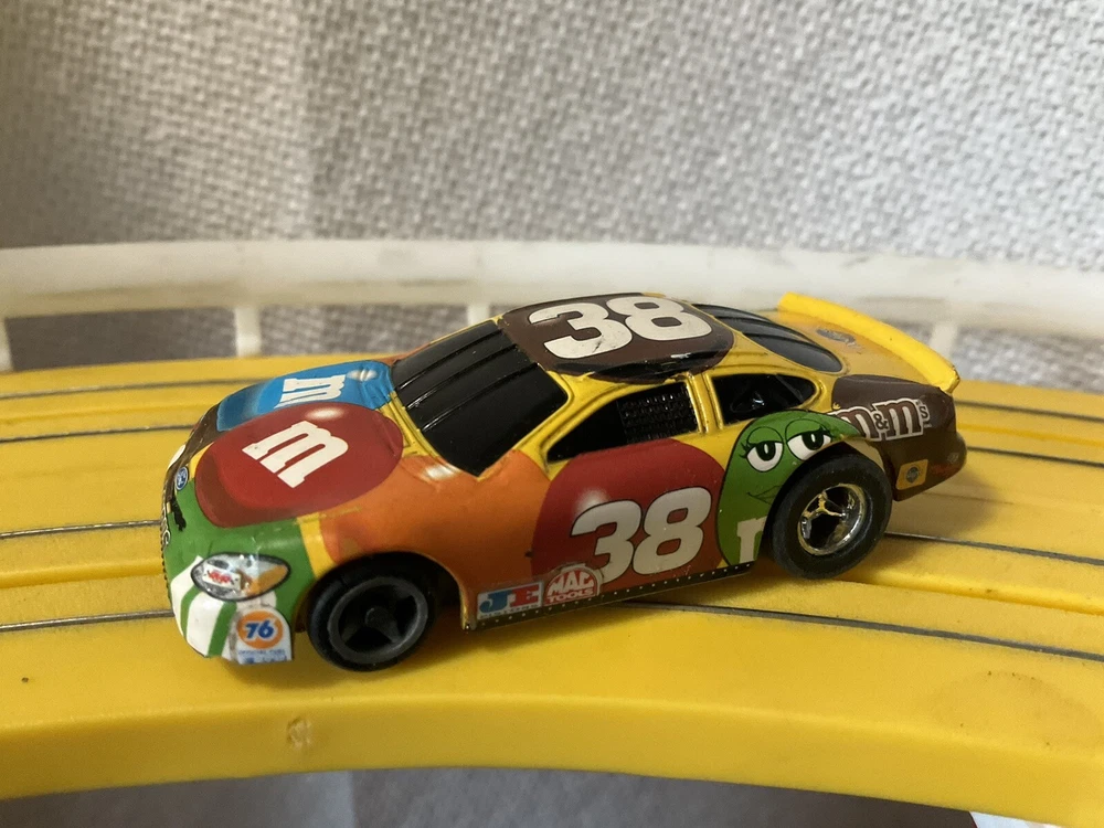 Slot car life like ho used T chassis m&ms stocker…track tested and runs fast and smooth…in great condition….a great addition to your set…be sure to click on the big blue button, the” sellers other items “ link. At the bottom of this listing and scroll thru ALL of our other 200+ Ho cars listed here on eBay, today…just quality, track tested slot cars and complete race sets, no other crap…you won’t see ALL of them in any other way….so for a quick turnaround and no jerk around, just find the ones that you really want, throw down the cabbage and let the fun begin….all the glory..