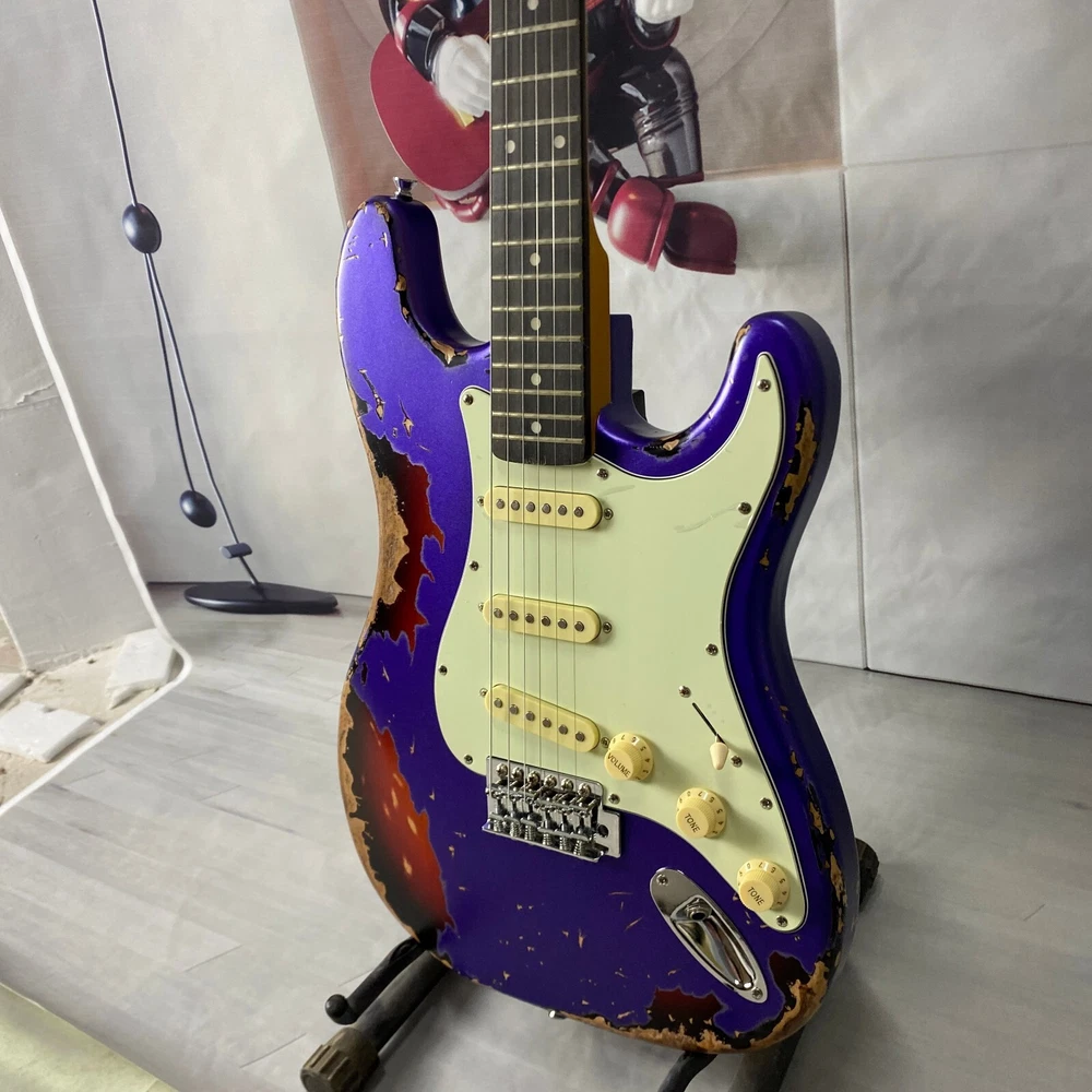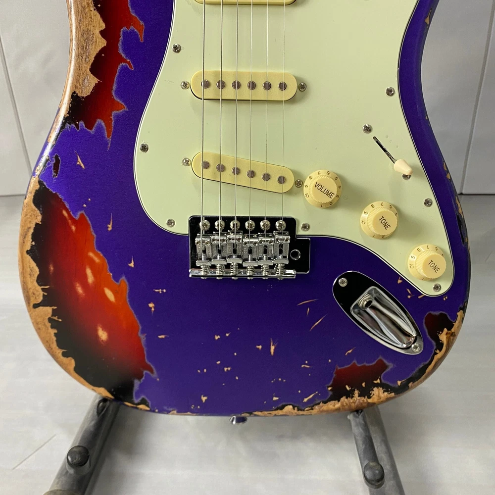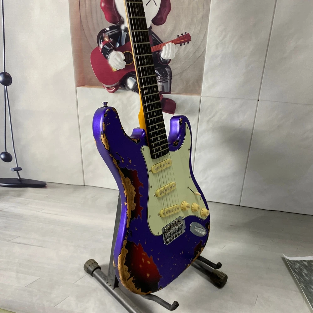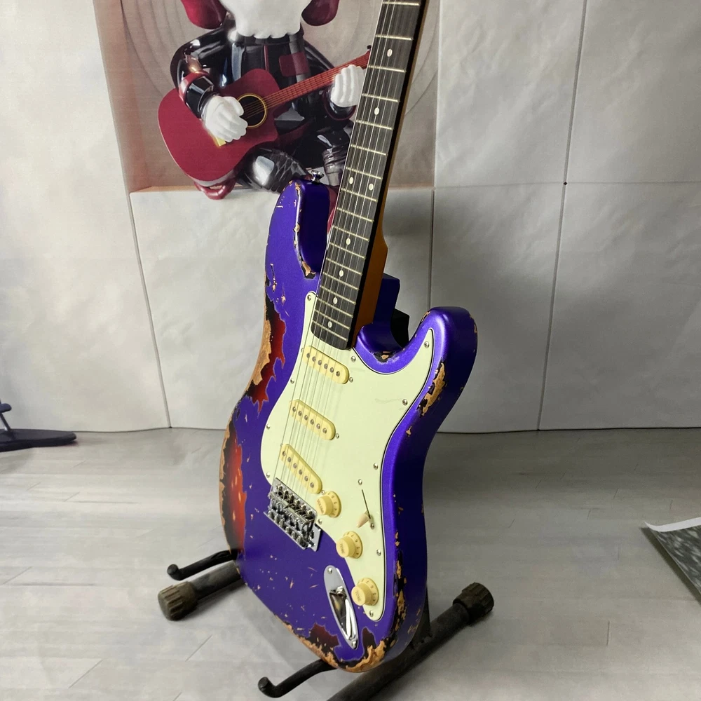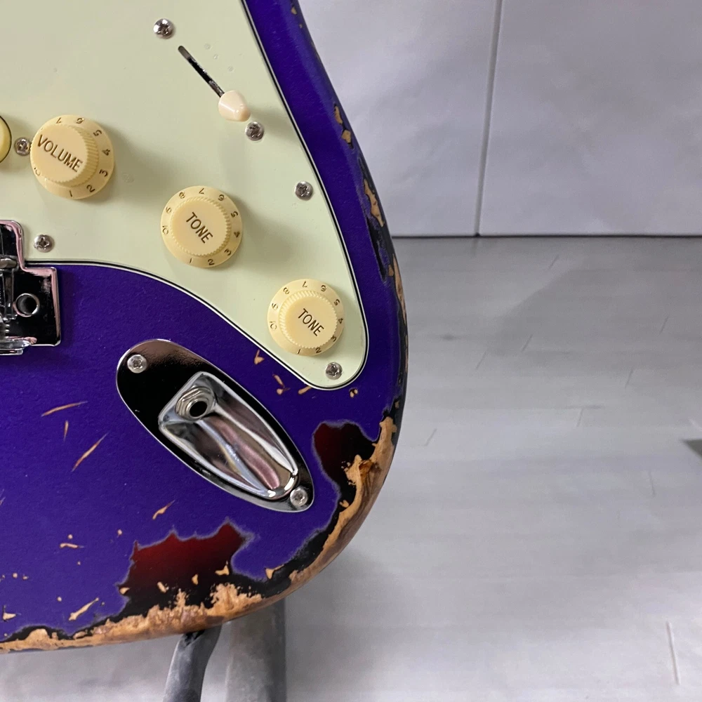 st electric guitar Chrome plated hardware purple body Vintage aging US warehouse