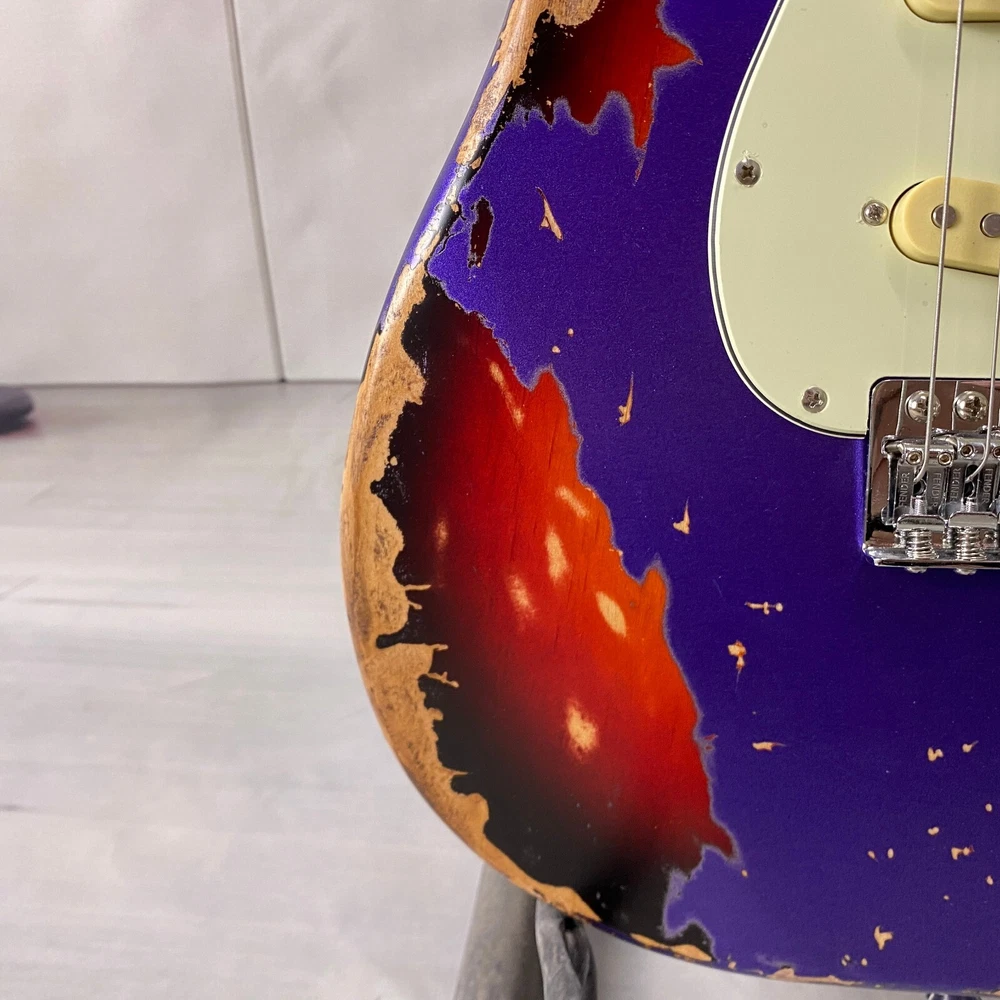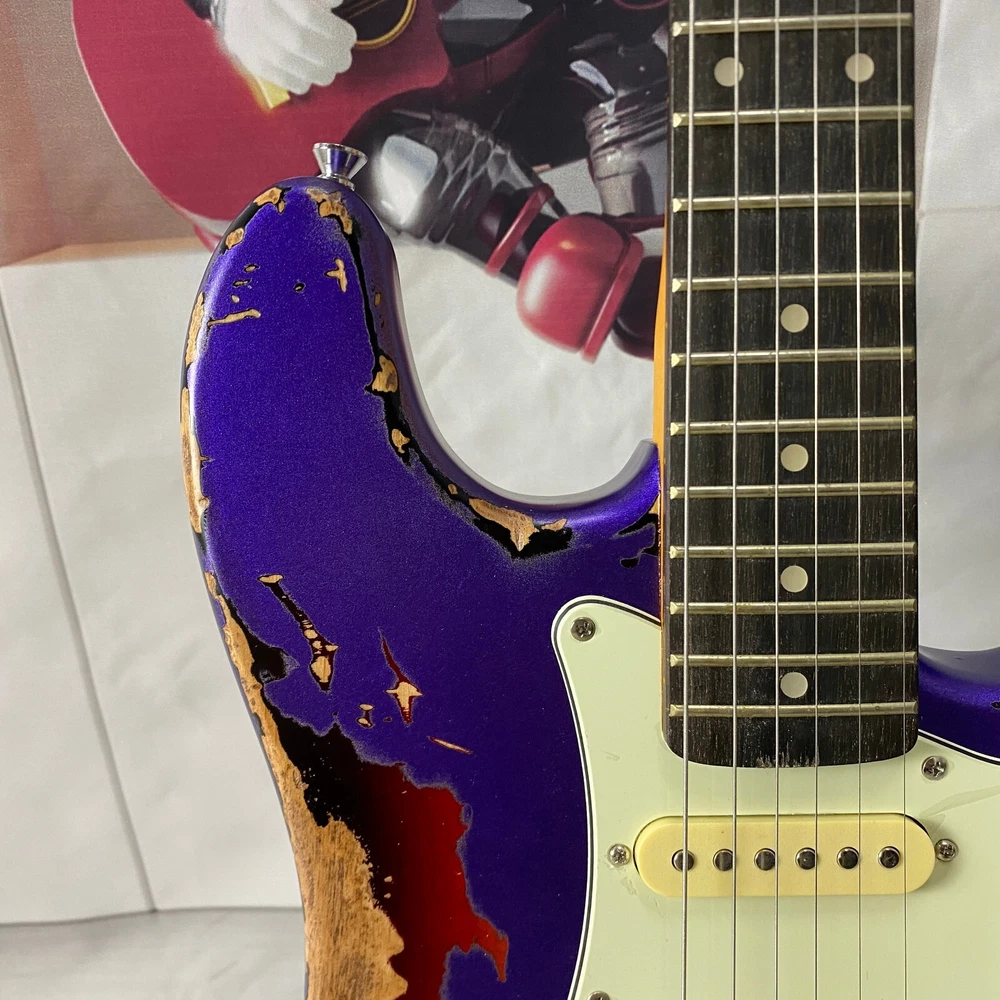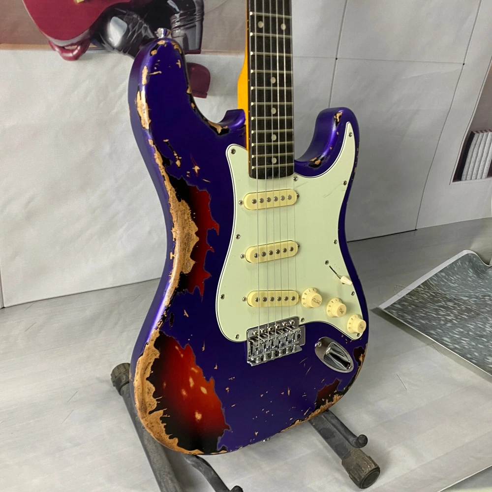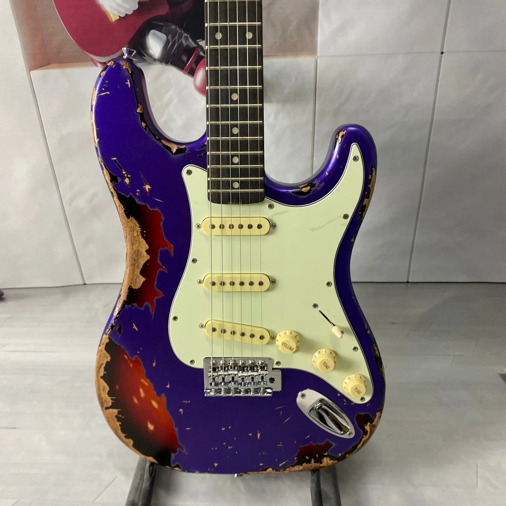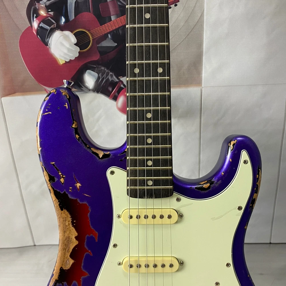 st electric guitar Chrome plated hardware purple body Vintage aging US warehouse