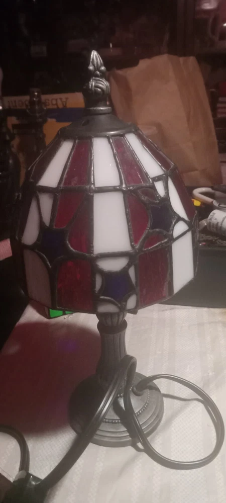 Cord Color: Black Type: Table Lamp Color: Multicolor Material: Stained Glass Style: 1980s Light Color: Clear Brand: Unbranded Power Source: Corded